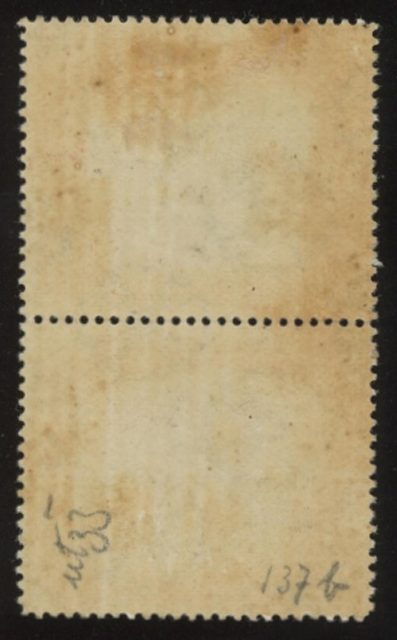 a small hinge remainders & a few small aging marks on the gum, the lower unit lightly mounted with a characteristic slight gum bend, Cat £15,000+ for singles. RPSL Certificate (1963) as the then SG 37b. Ex 'Dr Gyp' (Perrazzo). Rare: only one sheet of