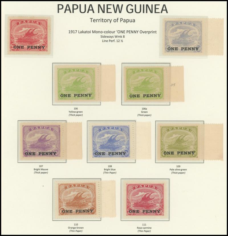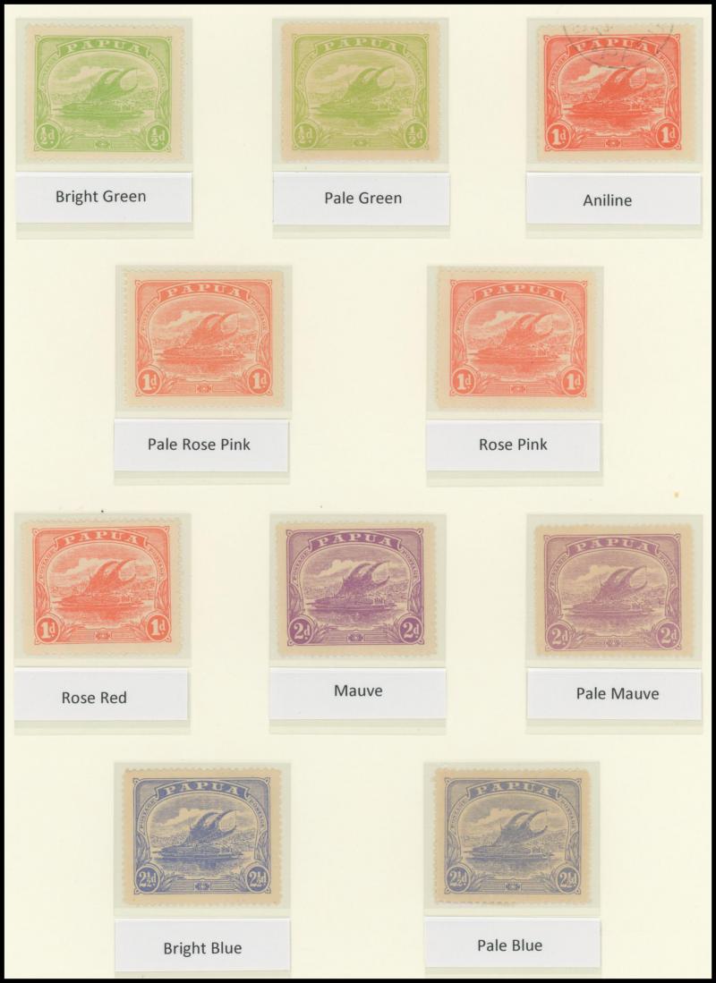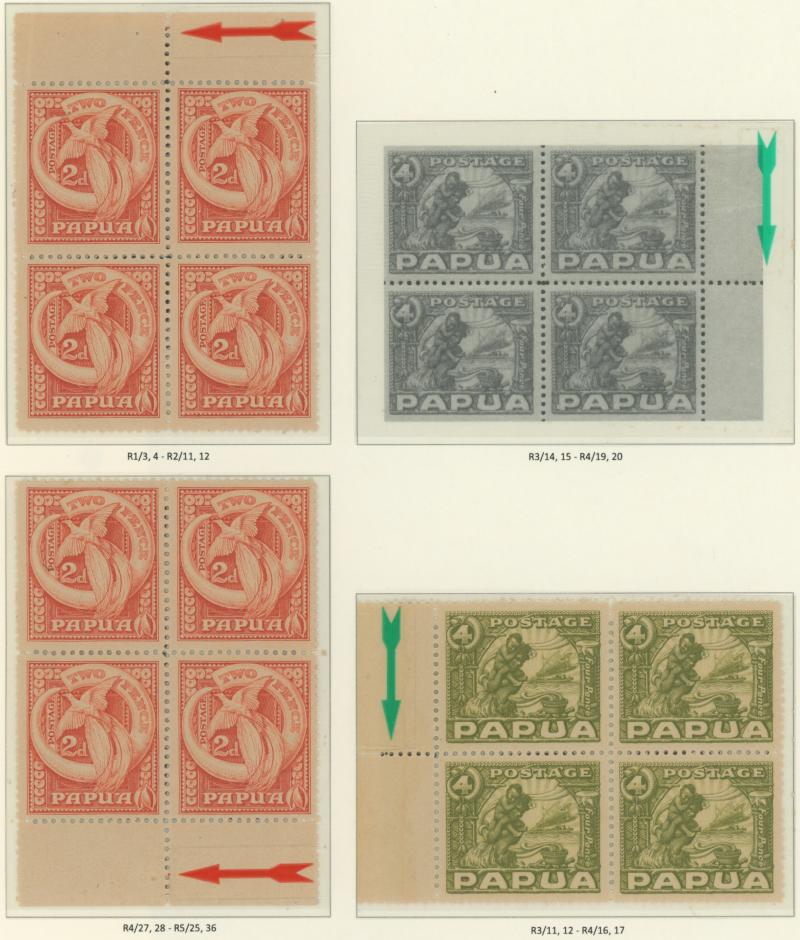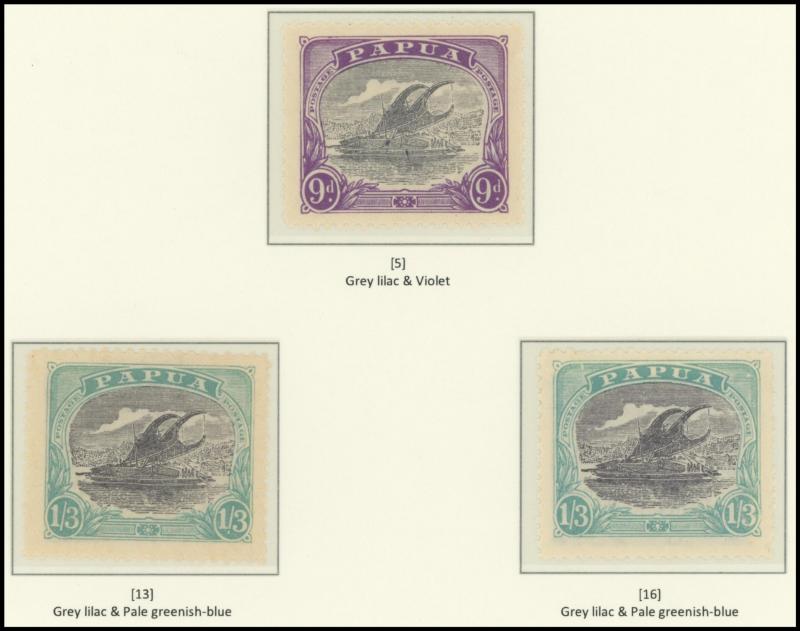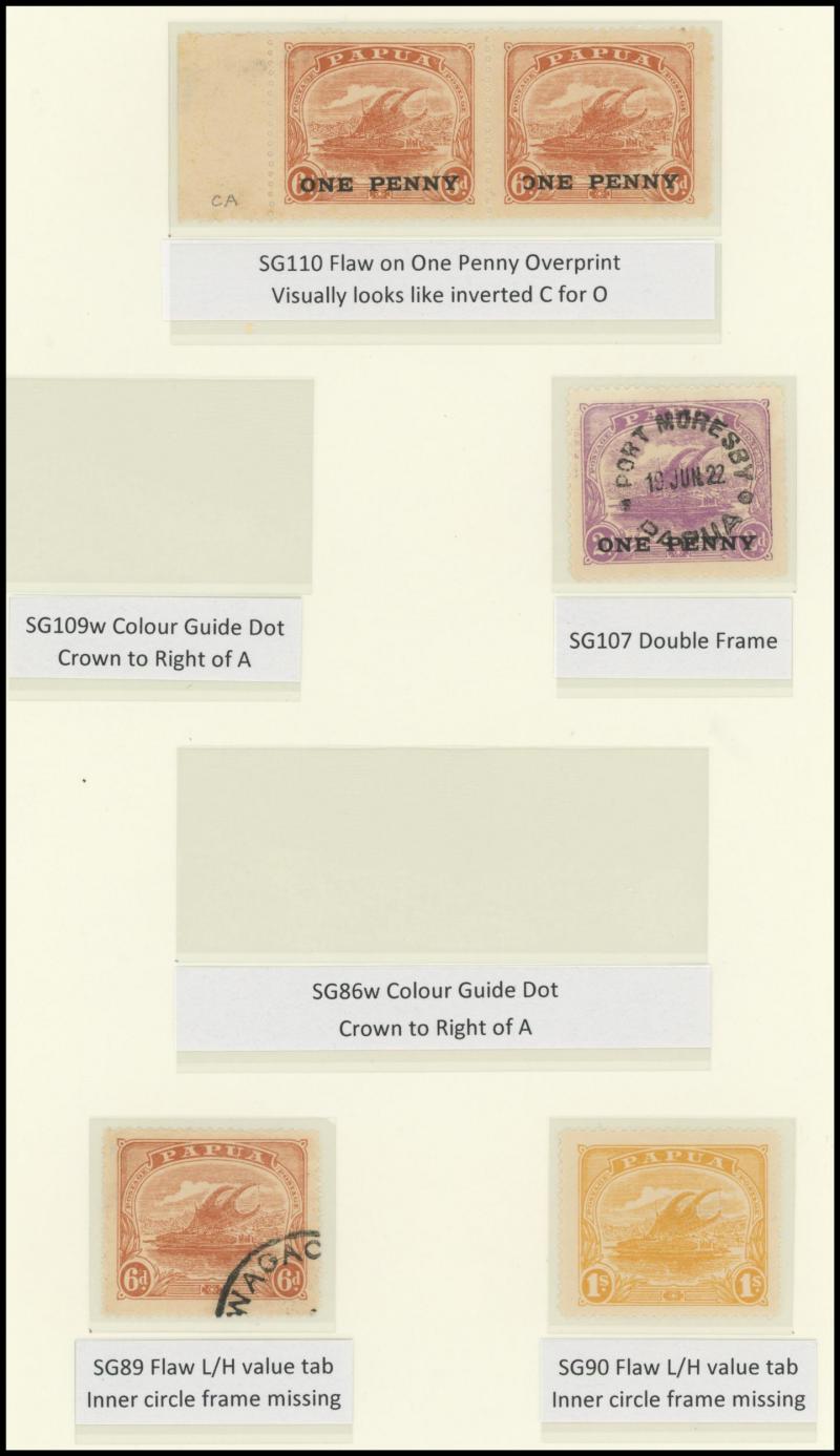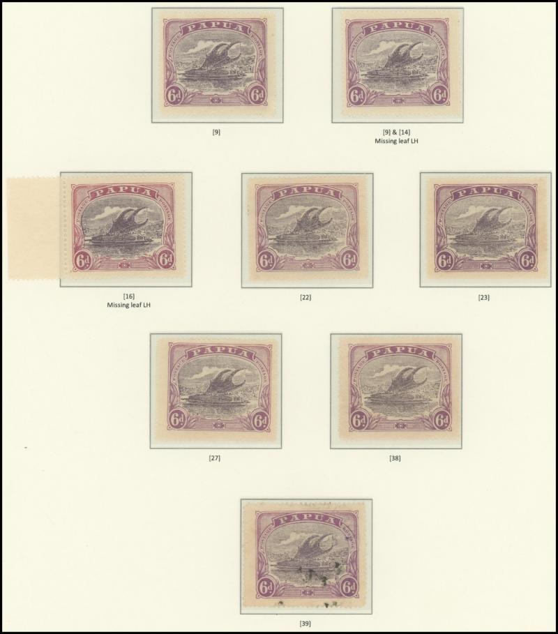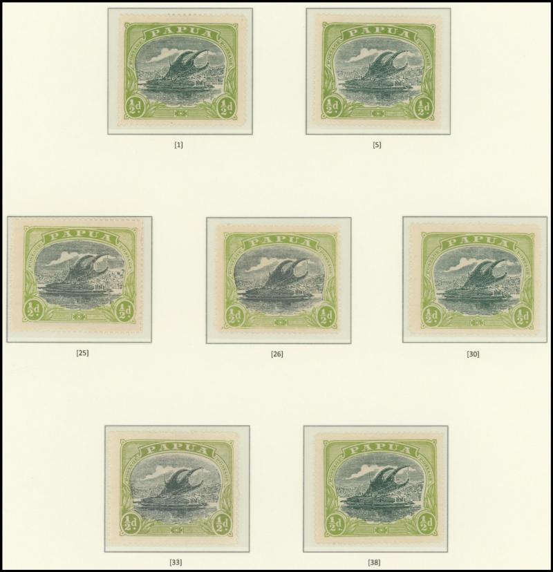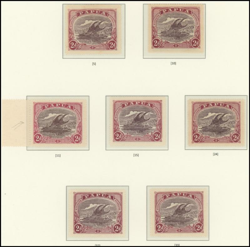 derive from small quantities of sheets from the original thick paper printings (in bright shades) which were still available at Port Moresby and were then included in the stock sent to Brisbane for overprinting". SG 35b has similarly been deleted,