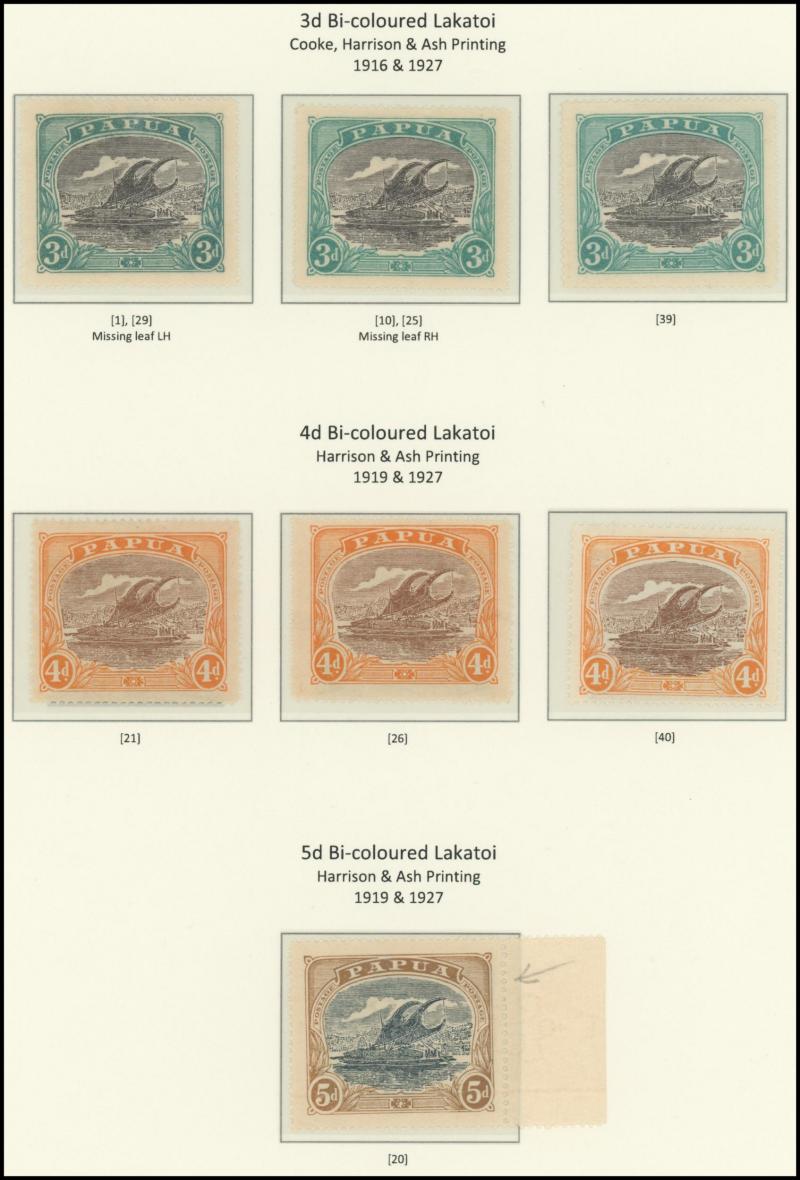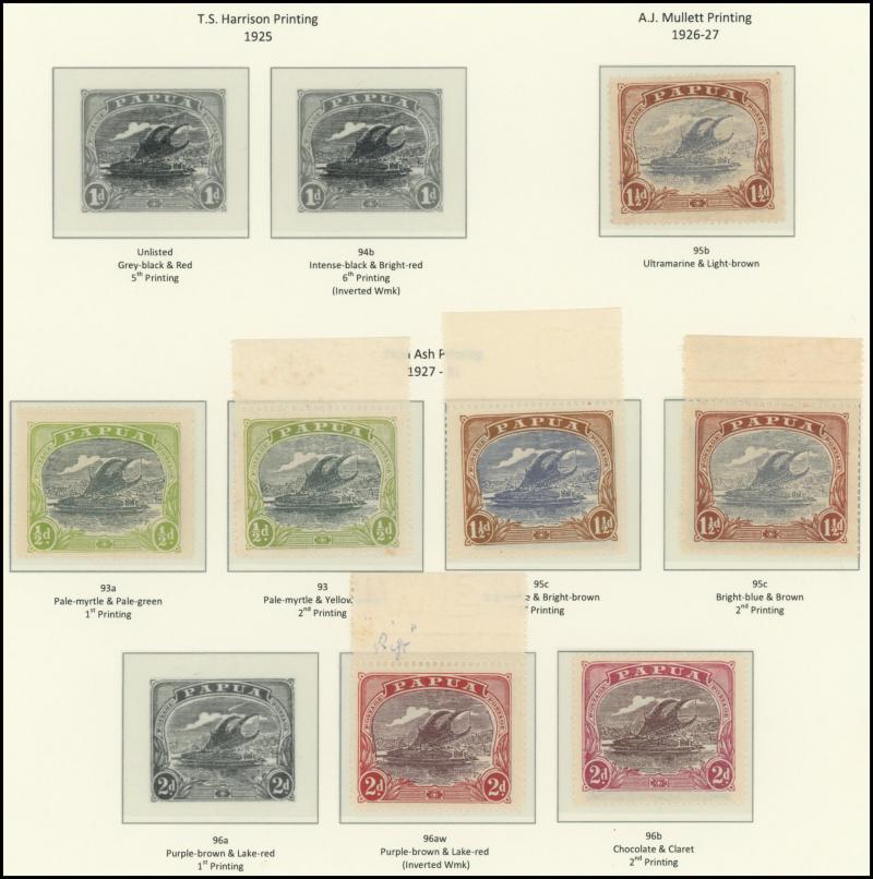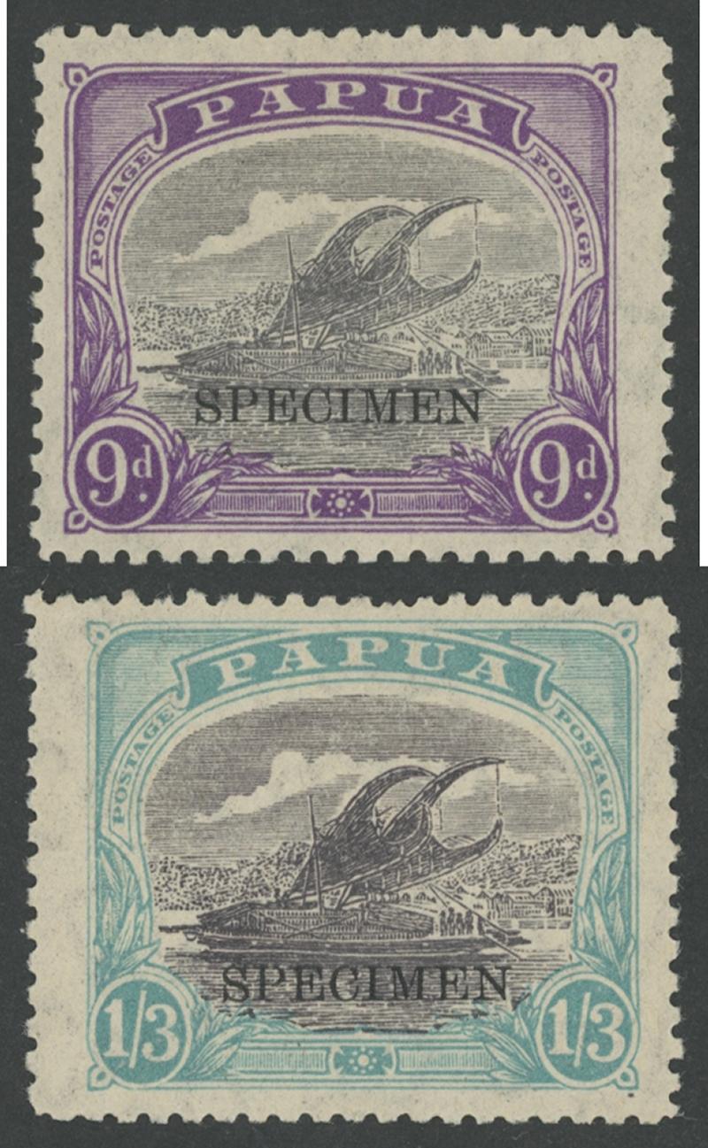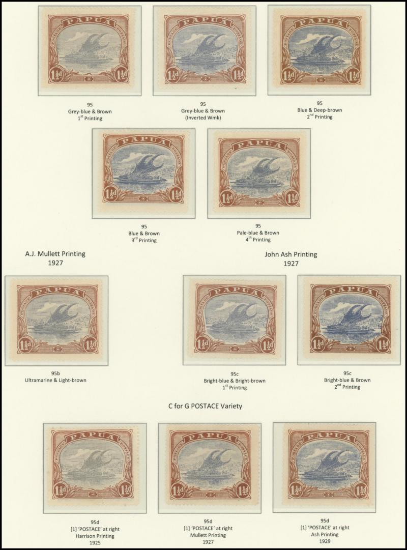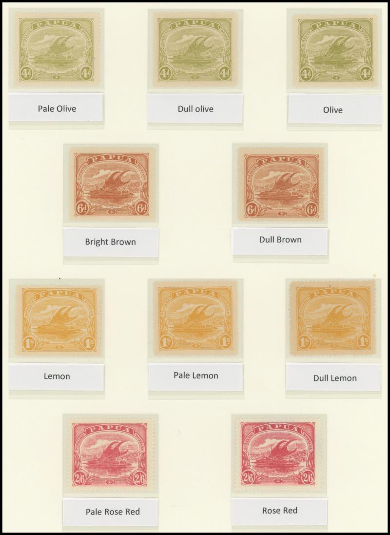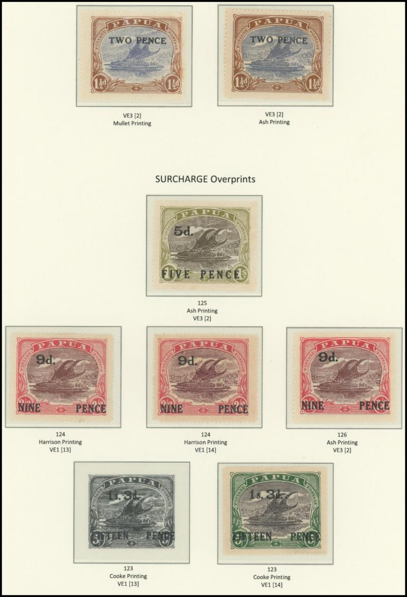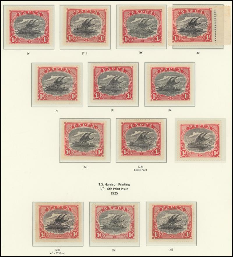 derive from small quantities of sheets from the original thick paper printings (in bright shades) which were still available at Port Moresby and were then included in the stock sent to Brisbane for overprinting". SG 35b has similarly been deleted,
