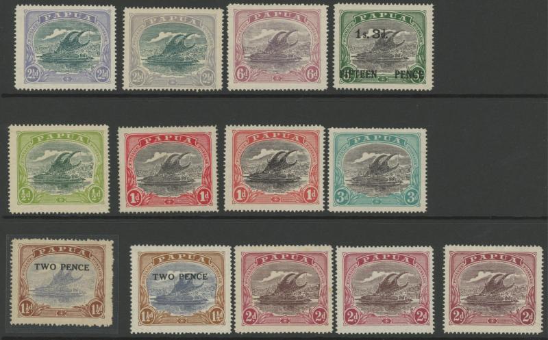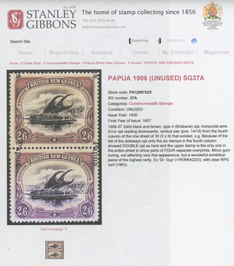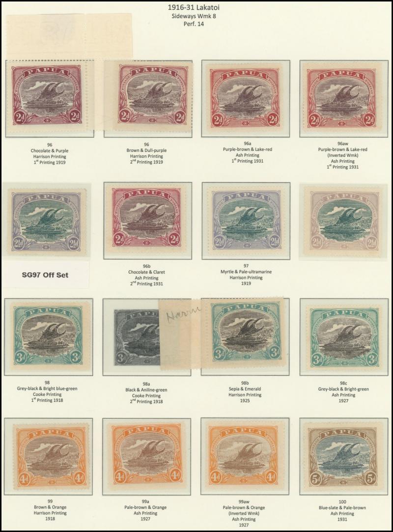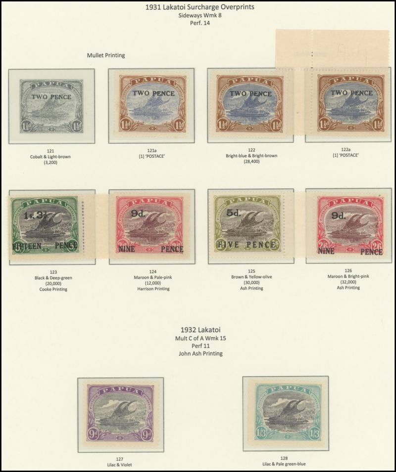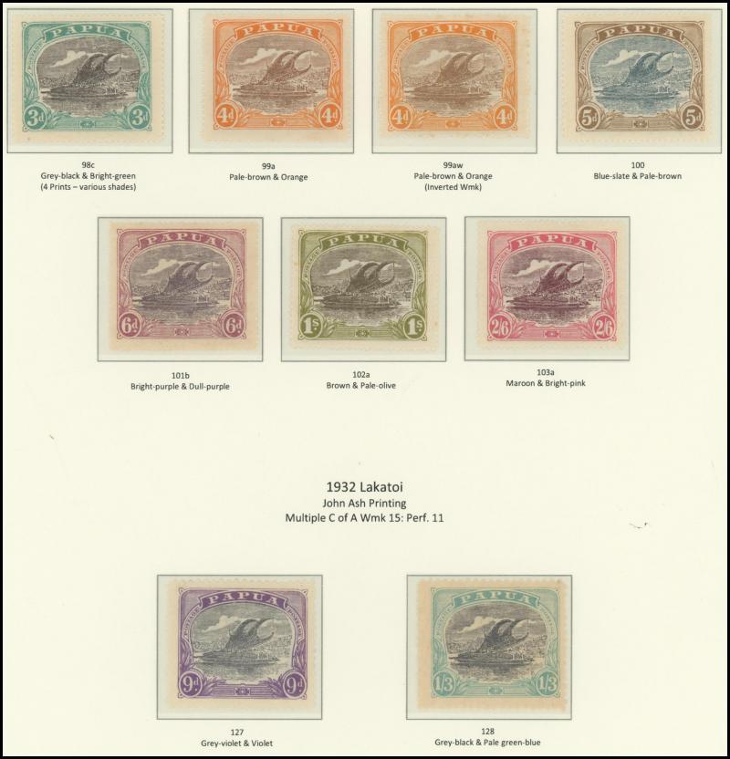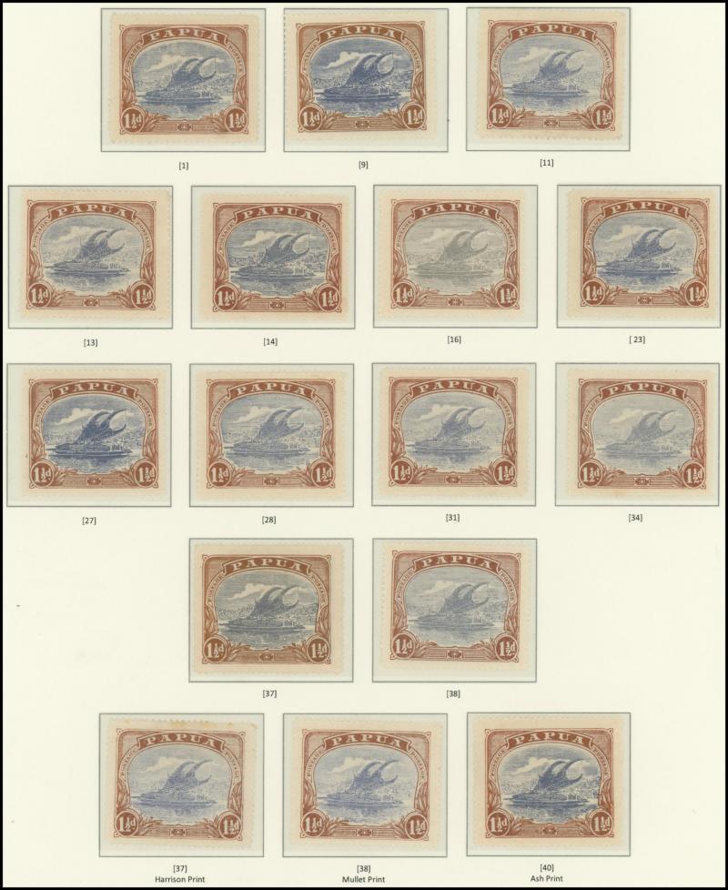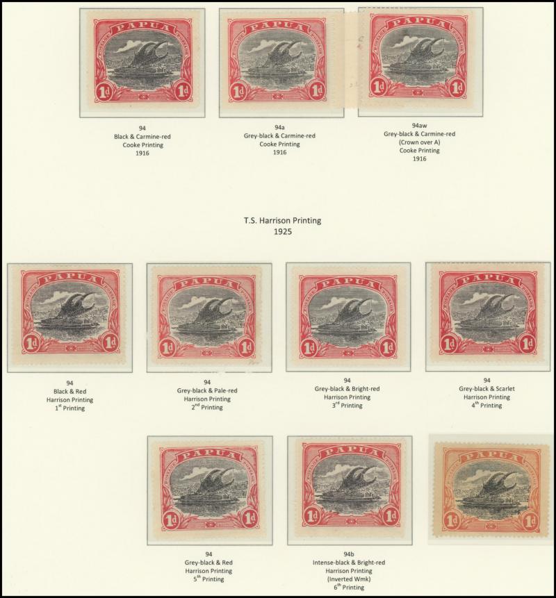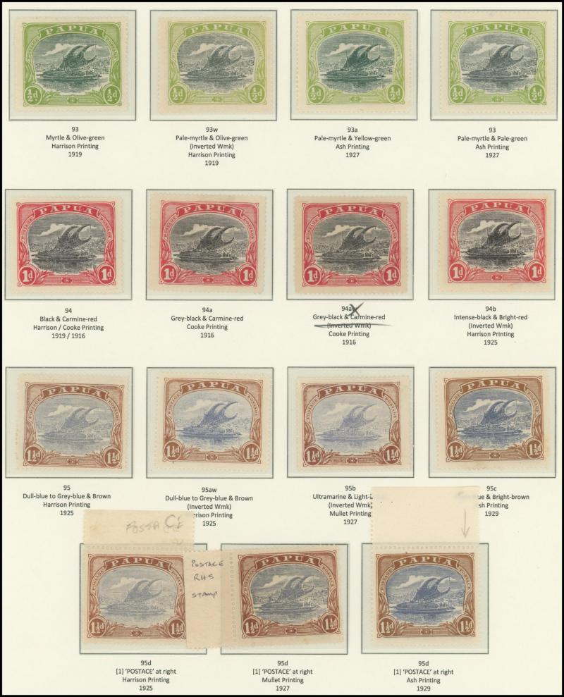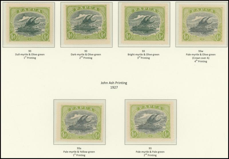 derive from small quantities of sheets from the original thick paper printings (in bright shades) which were still available at Port Moresby and were then included in the stock sent to Brisbane for overprinting". SG 35b has similarly been deleted,