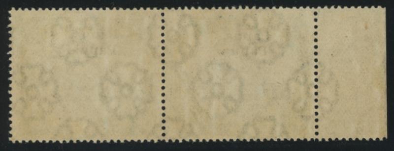 Vertical (Reading Down) SG 37a vertical pair with two complete impressions of the overprint across both units at left & right plus two further small-part impressions at the top of the upper unit, well-centred, facially very fresh, the upper unit with