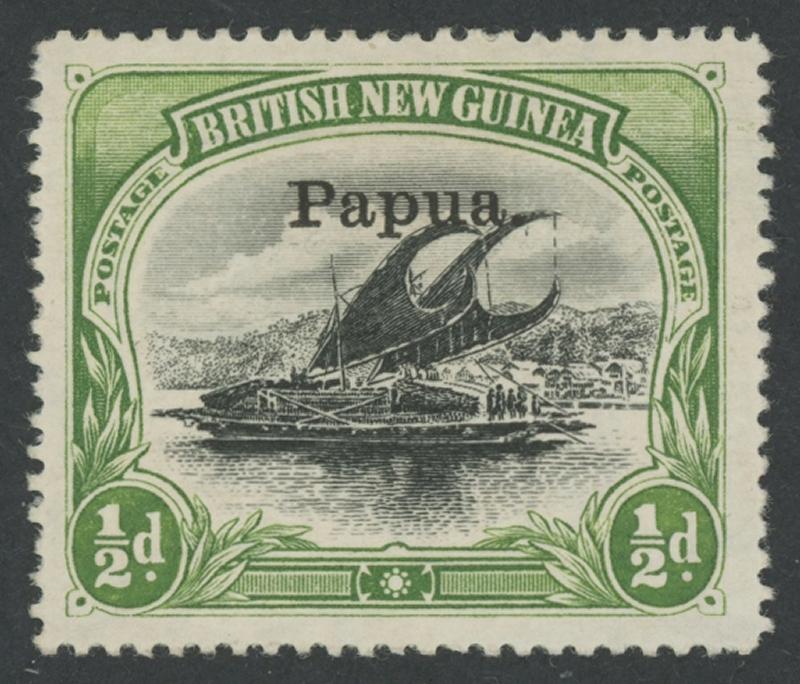 1907-10 Small 'PAPUA' Lithographs Crown/Double-Lined 'A' Watermark Sideways (Crown Pointing Right) Perf 11 ½d black & yellow-green