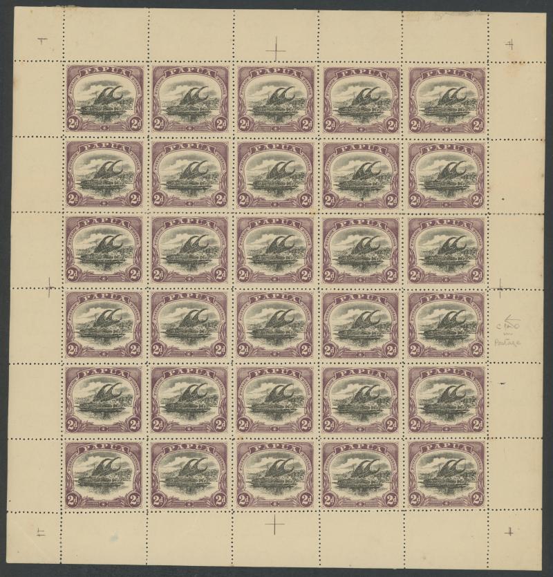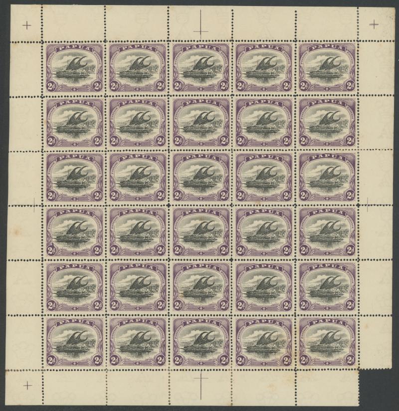1907-11 Large 'PAPUA' Lithographs Crown/Double-Lined 'A' Watermark Upright Perf 12½ 2d black & violet SG 77 complete sheet with