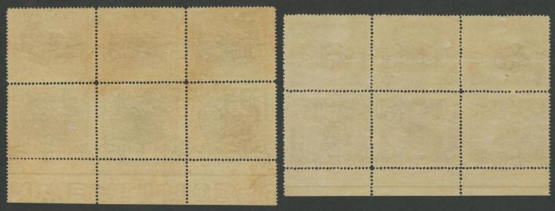 1930 Aeroplane Overprints Harrison Printings 3d sepia-black & bright blue-green SG 115 corner block of 6 (2x3) from the upper-left