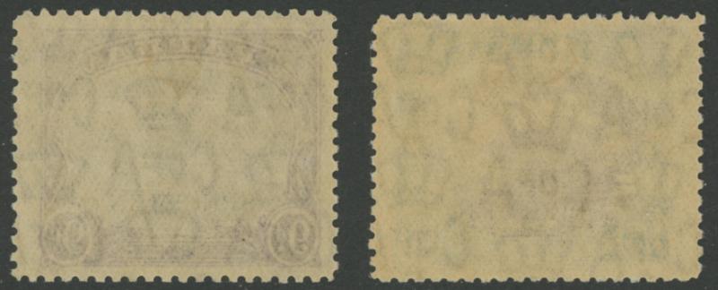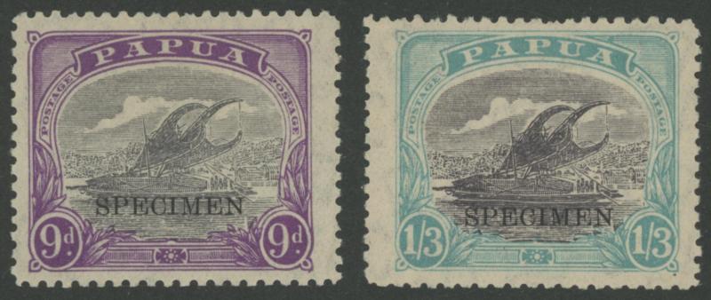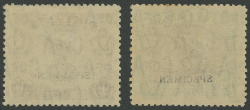 1932 Lakatois Bicolours Australian CofA Watermark 9d lilac & violet and 1/3d lilac & greenish-blue with 'SPECIMEN' overprints SG