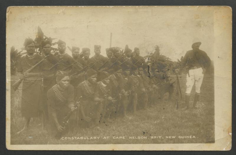 1905 real photo PPC ('Native Constabulary at Cape Nelson') to NSW with BNG 1d tied by 10-bars 'BNG' of Tamata (Lee #49; rated F),