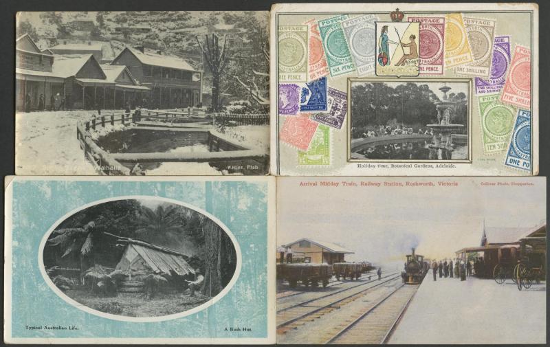 Mostly mounted selection with strength in Victoria including real photo cards & two early Walhalla types, also attractive nostalgic