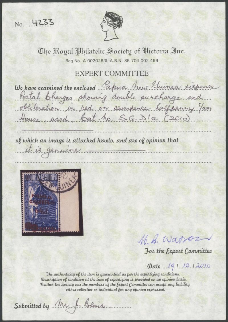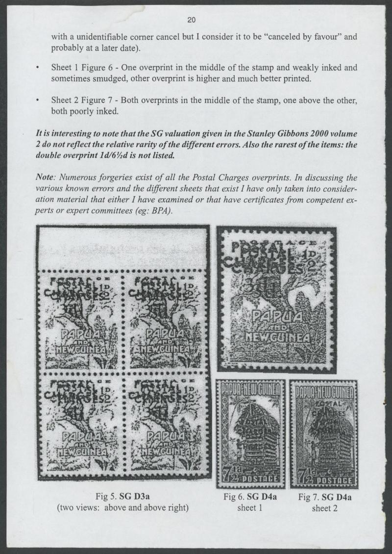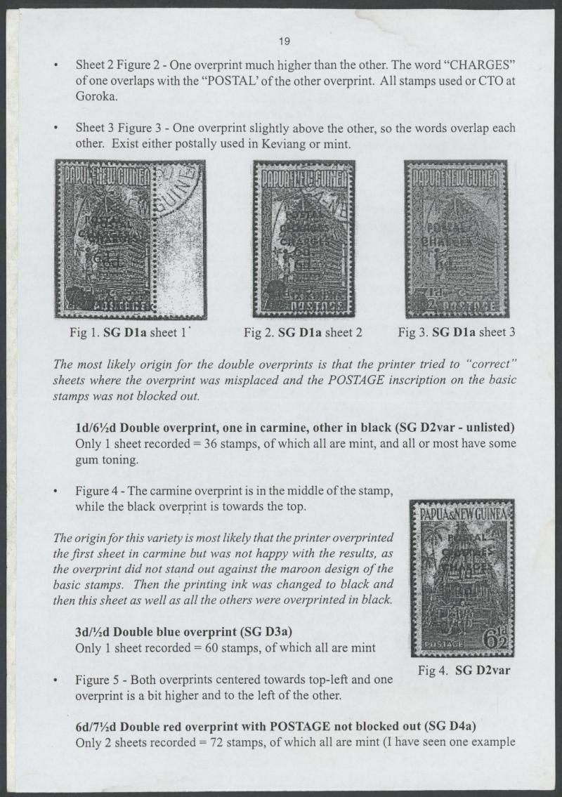 Geoff Kellow stated that three sheets of 36, readily distinguished by placement of the overprints, had been identified. He was able to account for 42 used examples, of which 24 - including this example - are from the First Sheet, on which the second