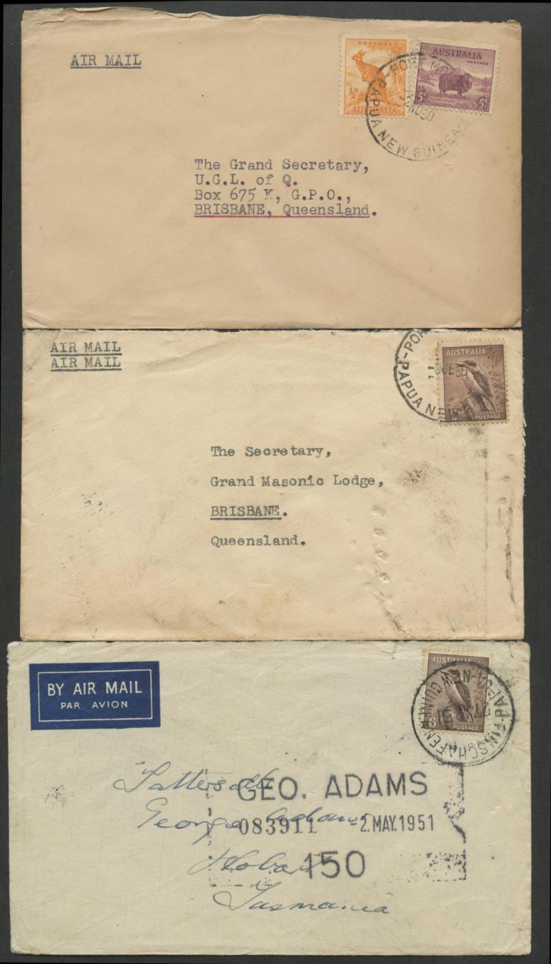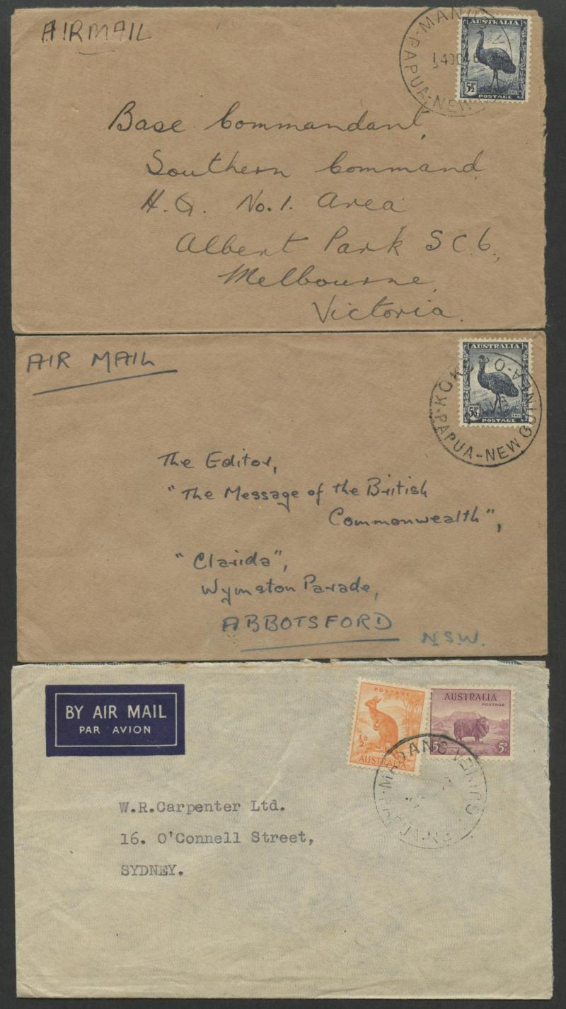 POSTAL HISTORY: Australian stamps used in the Territory including 1945 with 'P.M.G'S DEPT C.1/QLD-AUST' relief cds used at Port