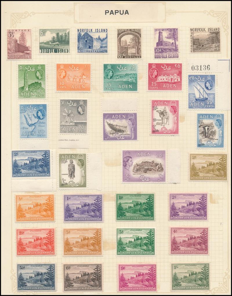 Norfolk Island mint & CTO range, a page of early France, 1954 Solomons formular aerogramme (front only) from Roviana with "Barakoma/30 3 54" cancels, etc.