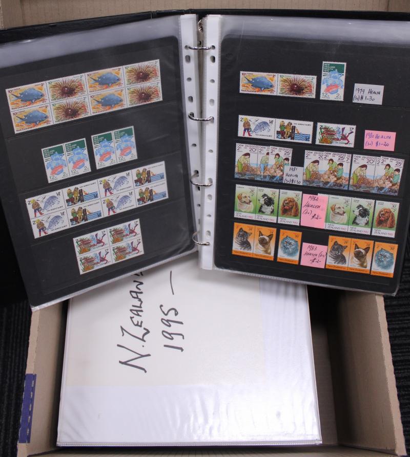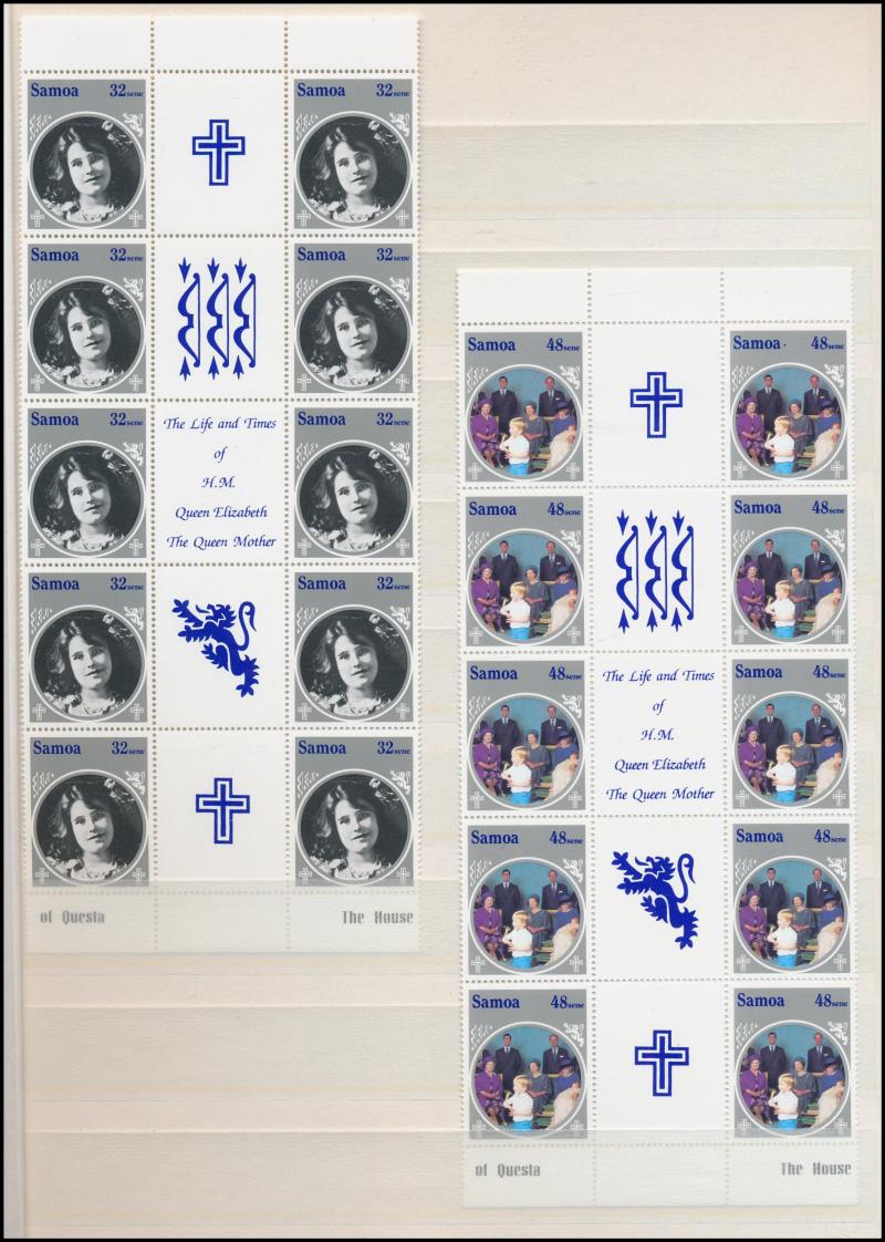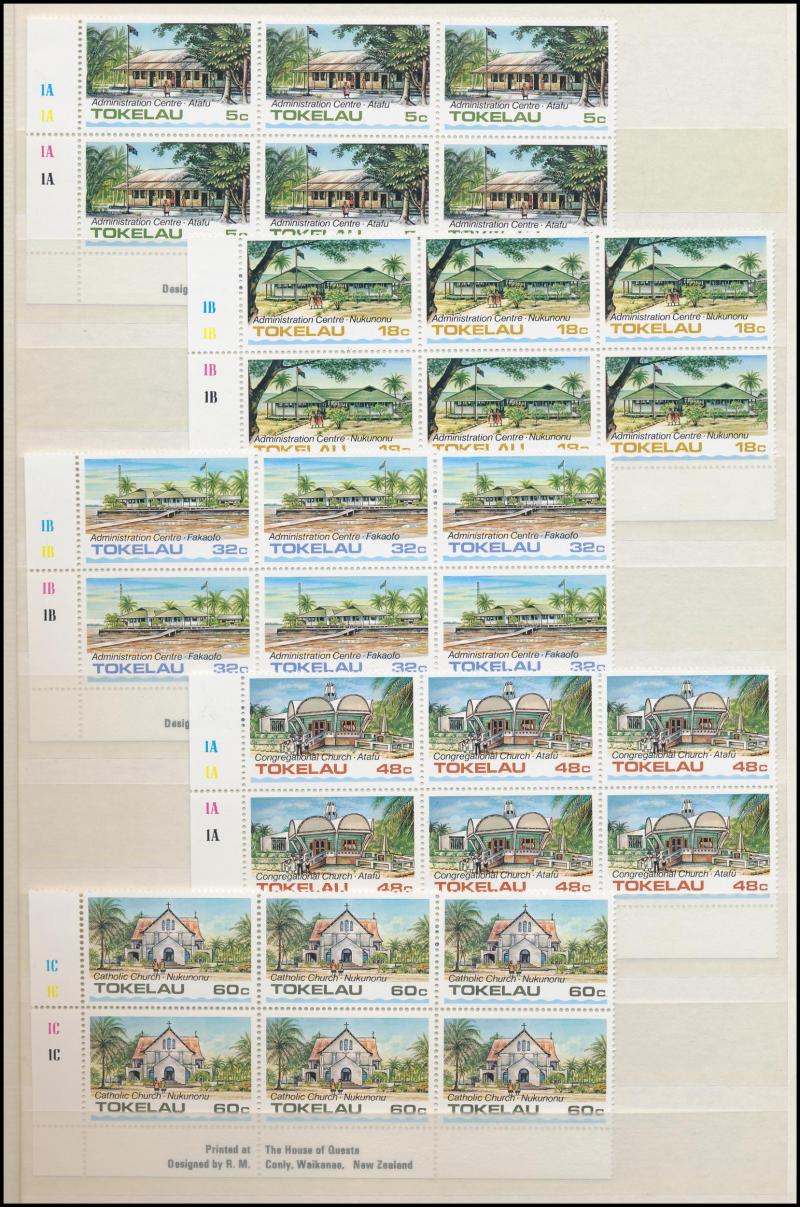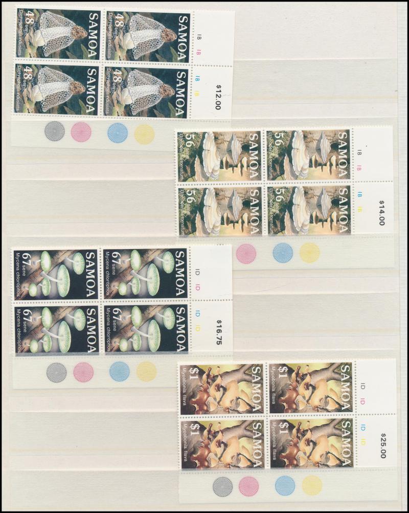 FDCs; Papua New Guinea 1980s blocks of four (some mounted); Samoa 1987-2016 in Seven Seas album plus Plate Number and gutter-blocks in stockbook; Tokelau 1967-94 with blocks of six; Tuvalu including 1977-2008 with M/Ss; great thematic content,