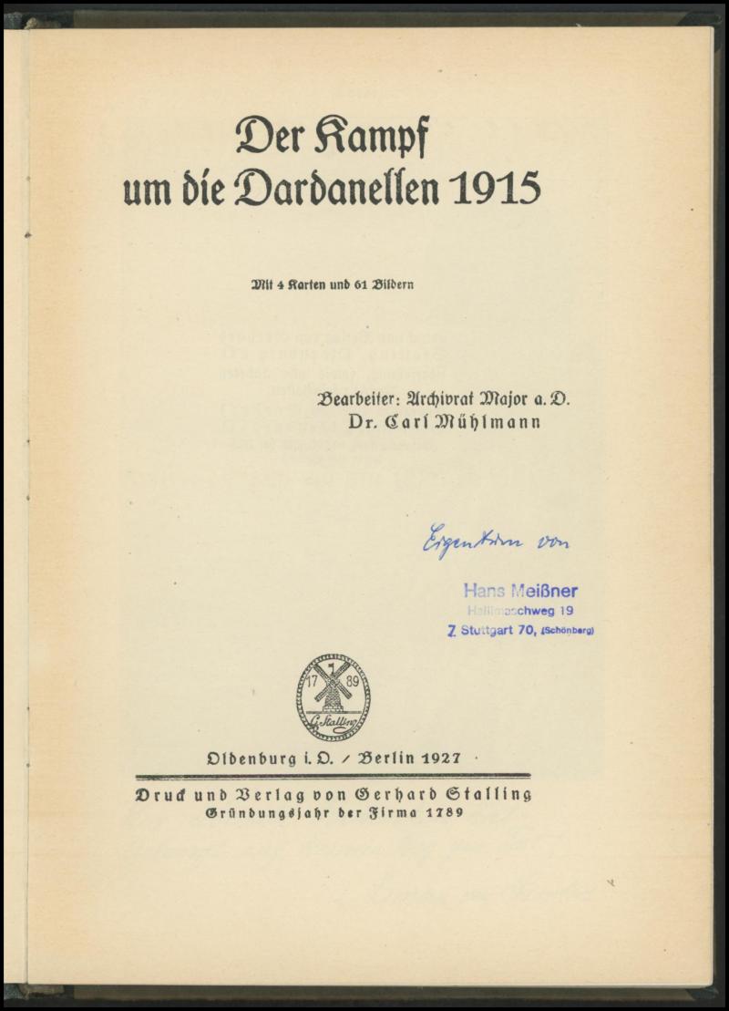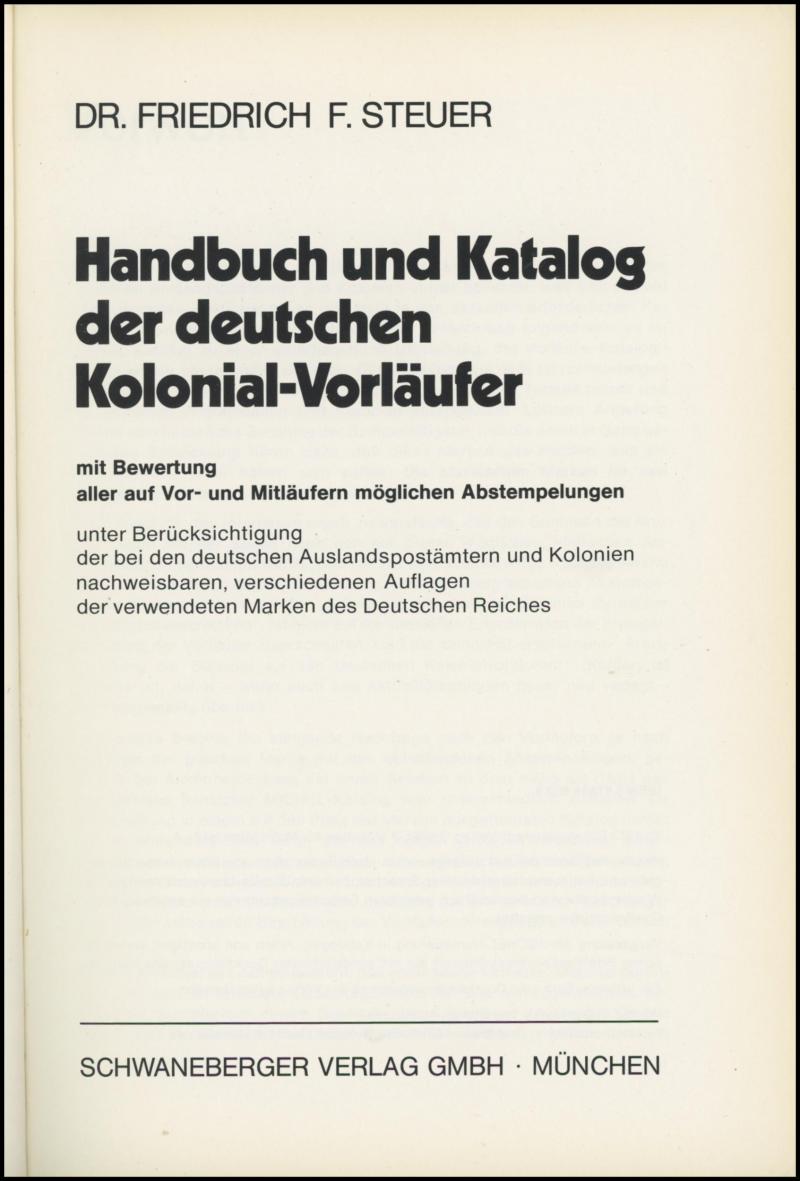 Catalogue of German Colonial Precursors' by Friedrich Steuer, and two books on the Battle of the Dardenelles in German. Weighs 4kg.