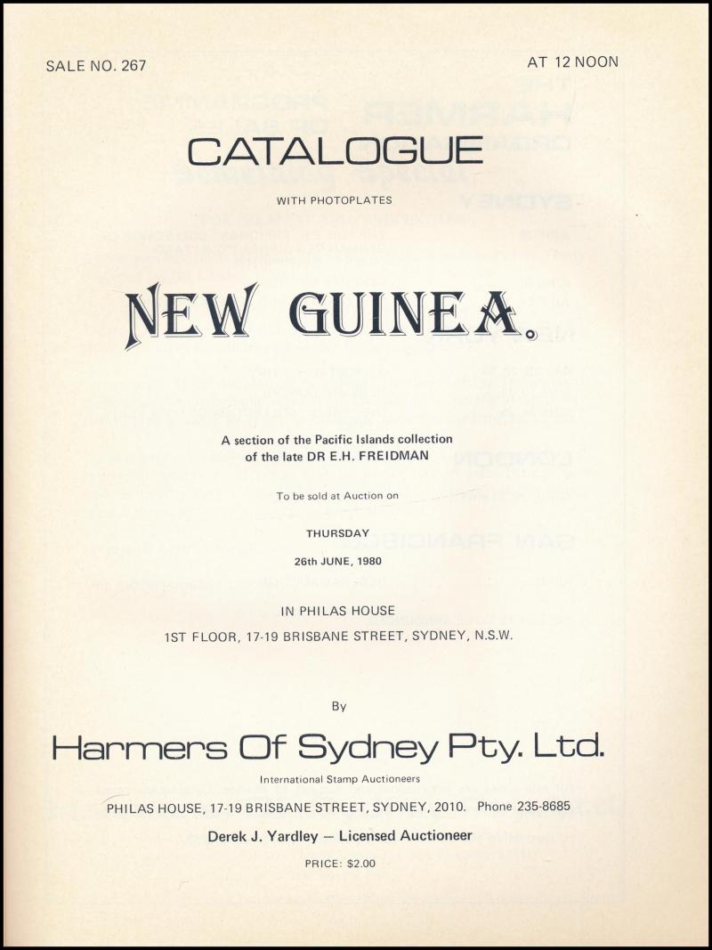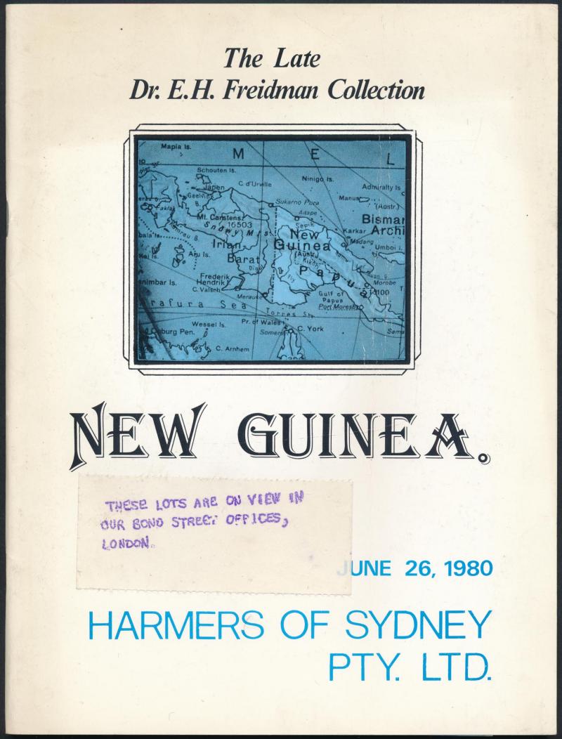 NEW GUINEA: Harmers of Sydney 'Dr E.H. Freidman Collection of New Guinea' (26.6.1980), 728 lots, with p/r. (Image1) (Image2)