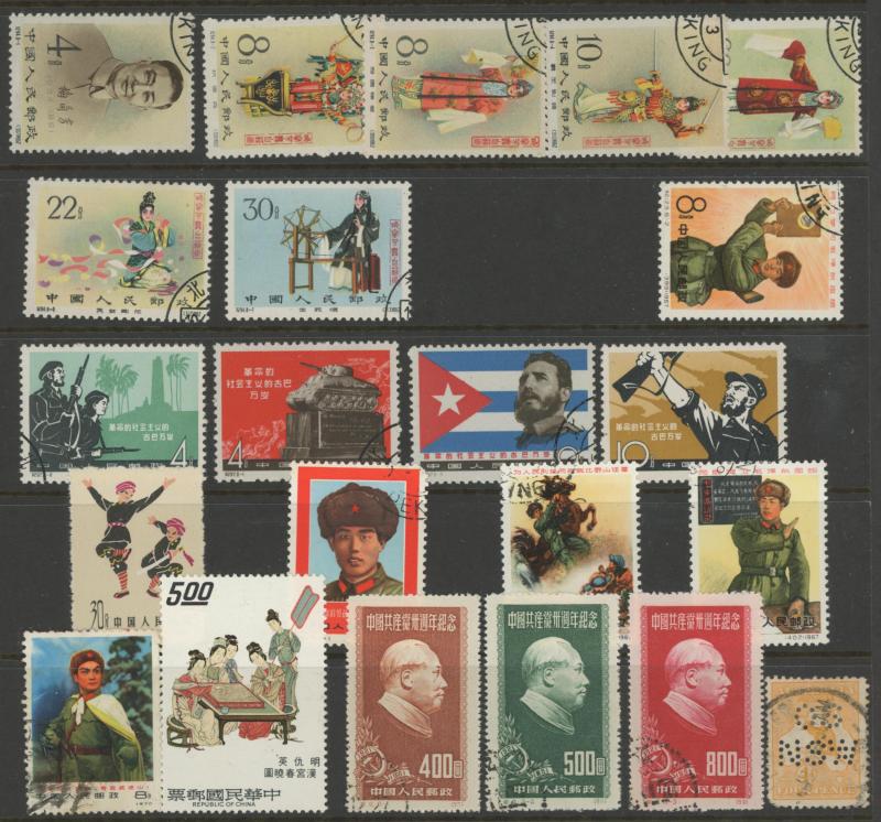 Untidy Asian selection with better items noted including China Mei Lang-feng set CTO, India KGV 25r VFU and 1929 Airs mint, others