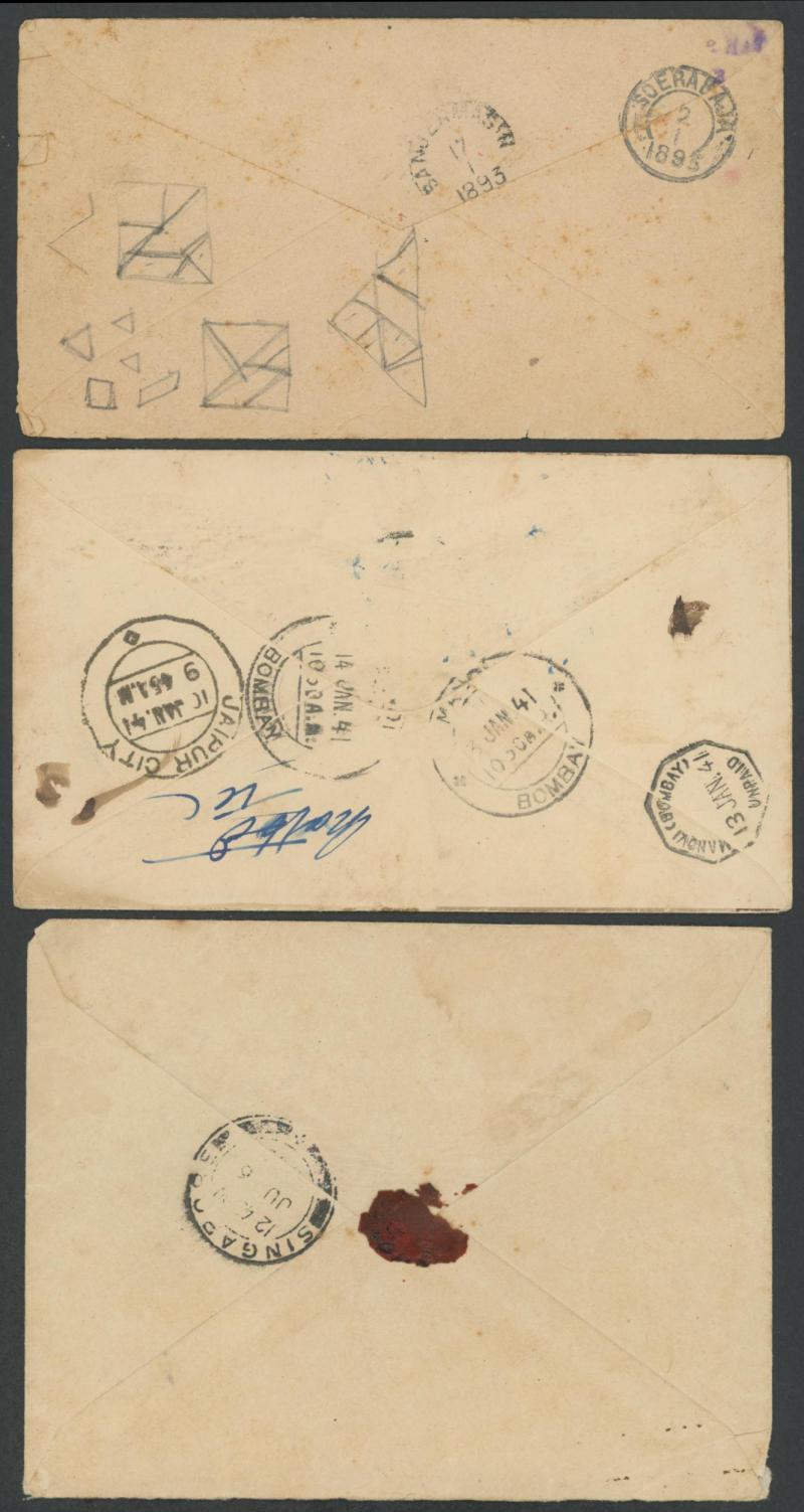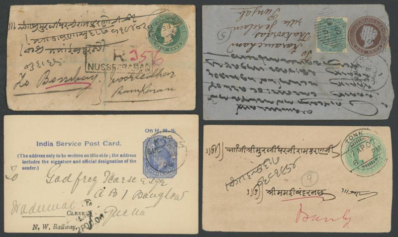 Asian selection including India & Convention States postal stationery with postmark interest, 1941 unpaid illustrated advertising
