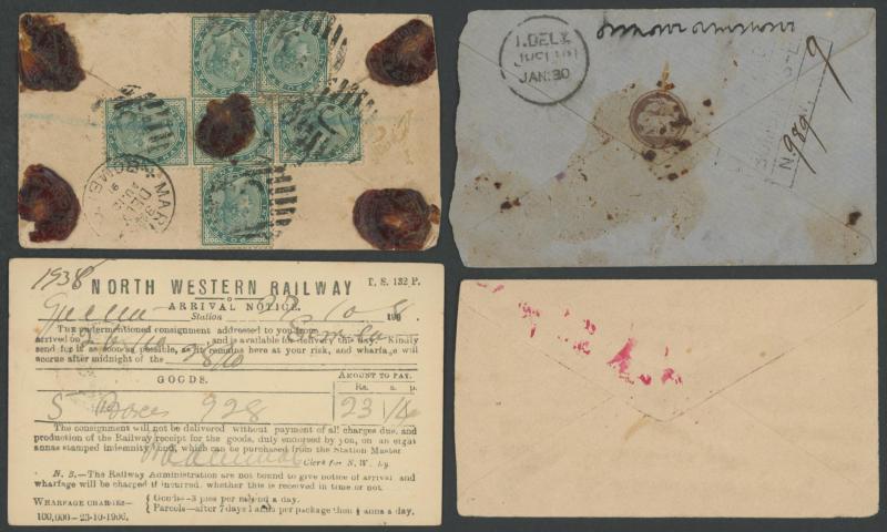 cover, 1903 QV set to 5r tied to two pages by superb 'CORONATION- DURBAR/.../CENTRAL-HEAD-OFFICE' cds; Dutch Indies postal stationery including 1887 5c Postal Card 'DJOKJAKARTA' to 'POERWOREDJO' with 5c Revenue tied to the reverse, Envelopes 1893