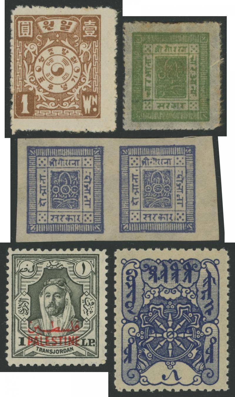 Cilicia 'CILICIA' Overprints on Turkey to 5pi *&U (17); Nepal x32 with 1886-98 Native Paper of Good Quality 1a blue SG 7 superb pair and 1898-1903 Pin Perf set; Palestine 1948 Overprints on Trans-Jordan to £1, very lightly mounted (17); Persia Lions