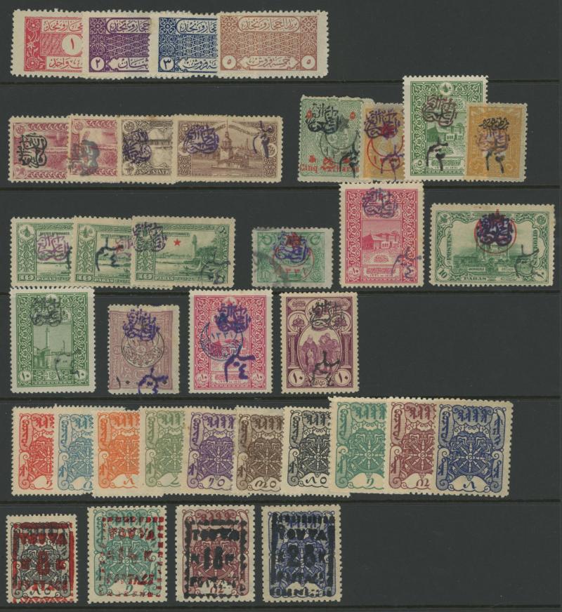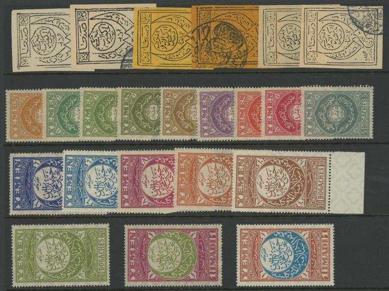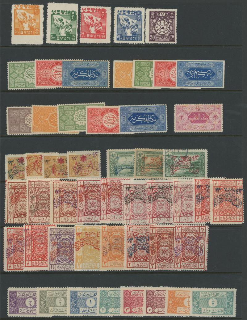 x26 with many obvious forgeries; Saudi Arabia x50 with Handstamps on Ottoman Issues plus issues for Hejaz and Nejd; Yemen x23 with primitives x6 and Perf to 1i both Bicolours (superb unmounted); etc; mostly unused/mint, generally very fine but
