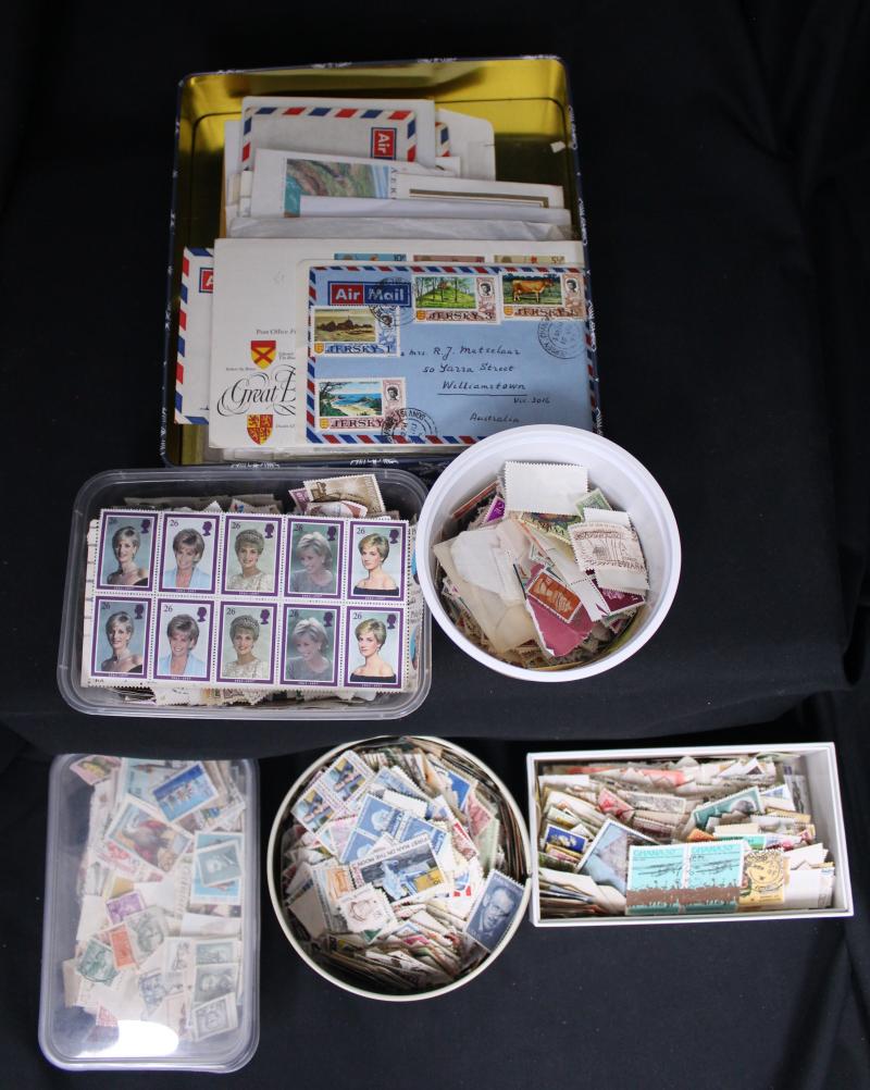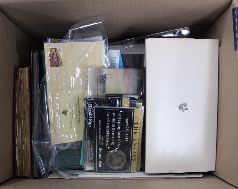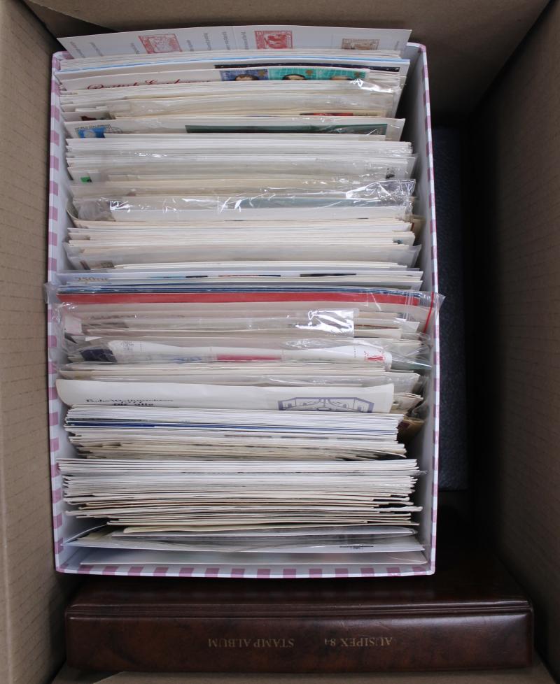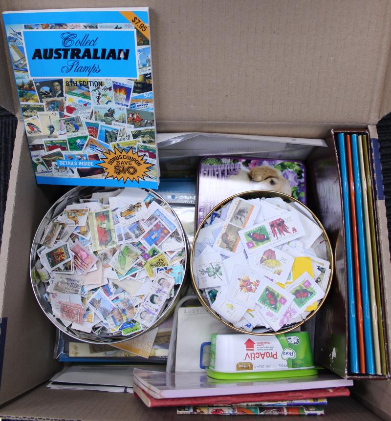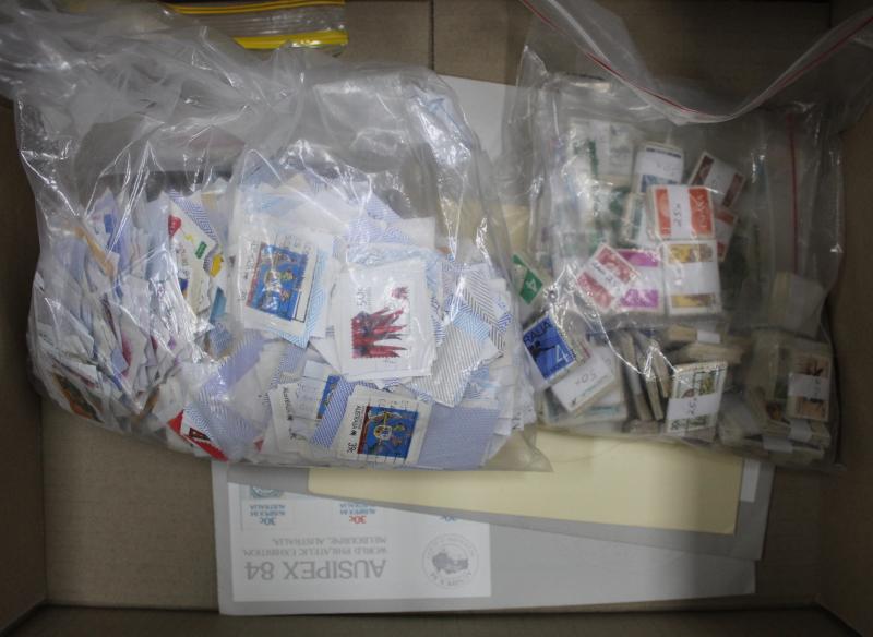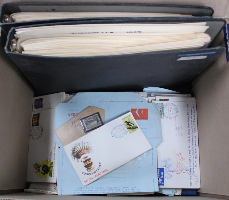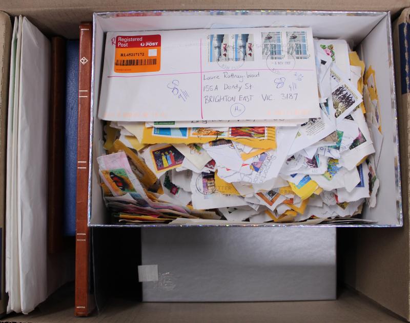 plus FDCs and covers including commercial mail, aerogrammes, condition variable; also Australian postage with sheetlets, presentation packs, self-adhesives, face value $1260. Weighs 70kg.