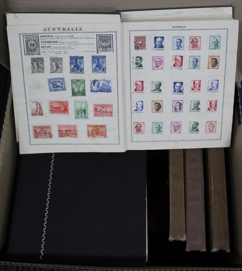 Five cartons of collector's remnants including schoolboy collections and stockbooks, Australia & Great Britain on/off-piece, WWF