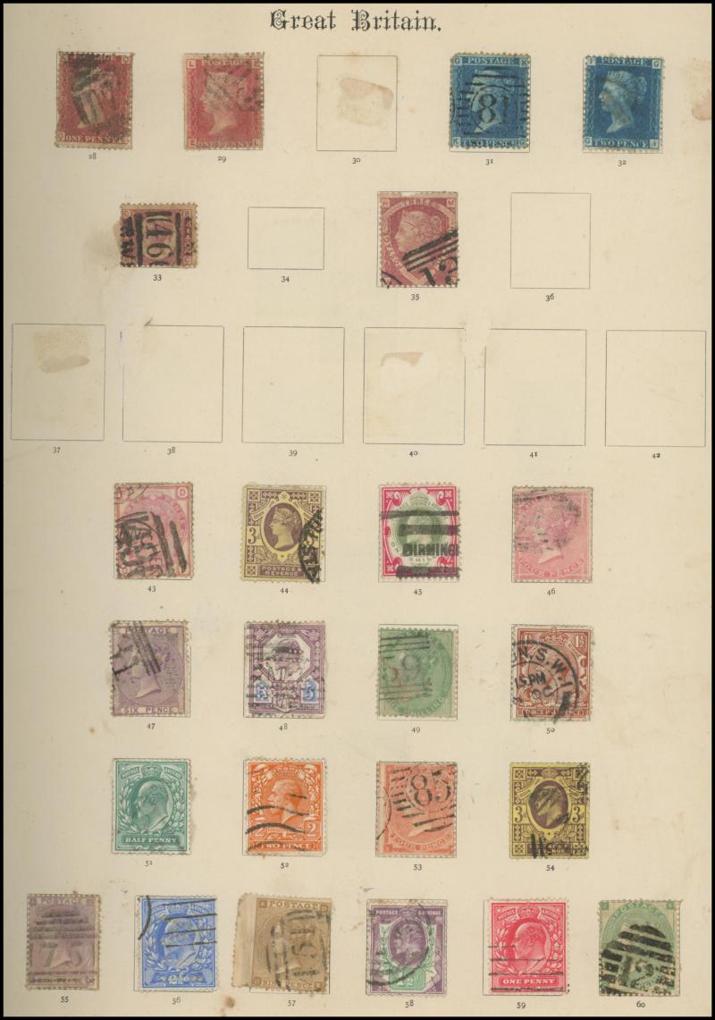 World albums with strength in South Africa including varieties, Great Britain including Penny Black x3 (one with four margins), 1d