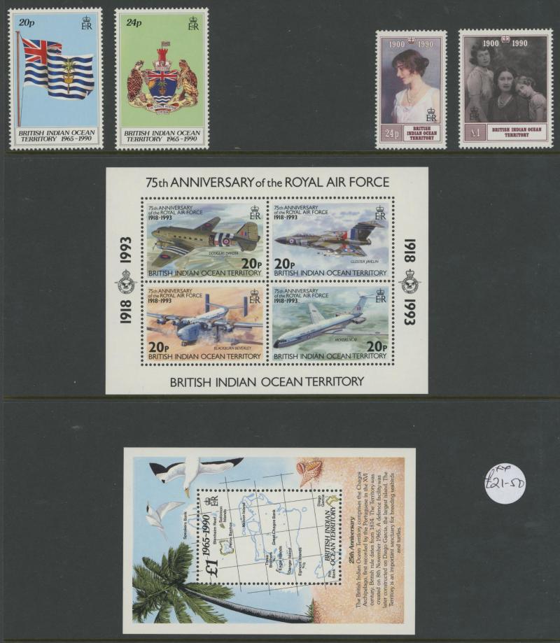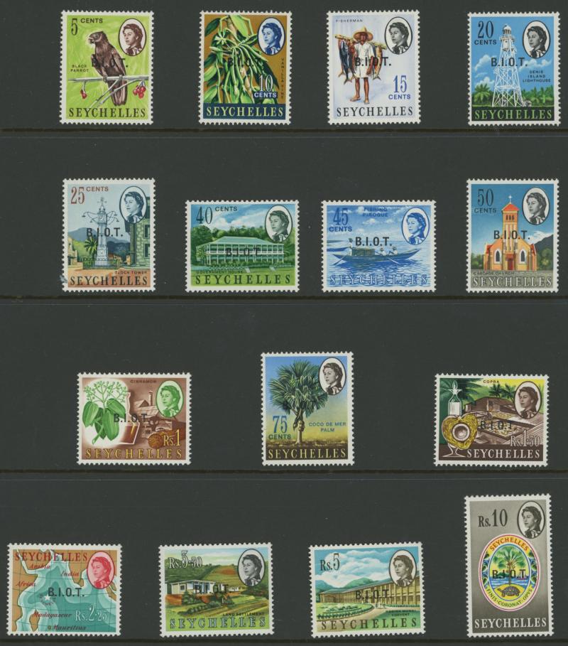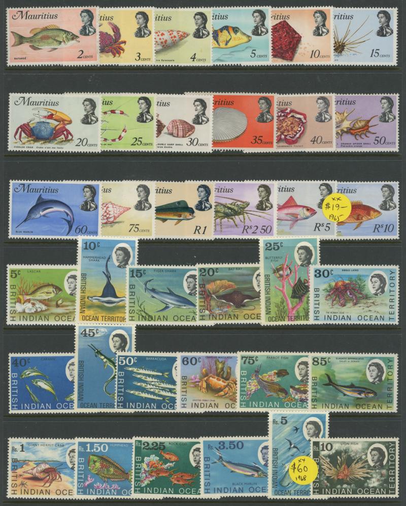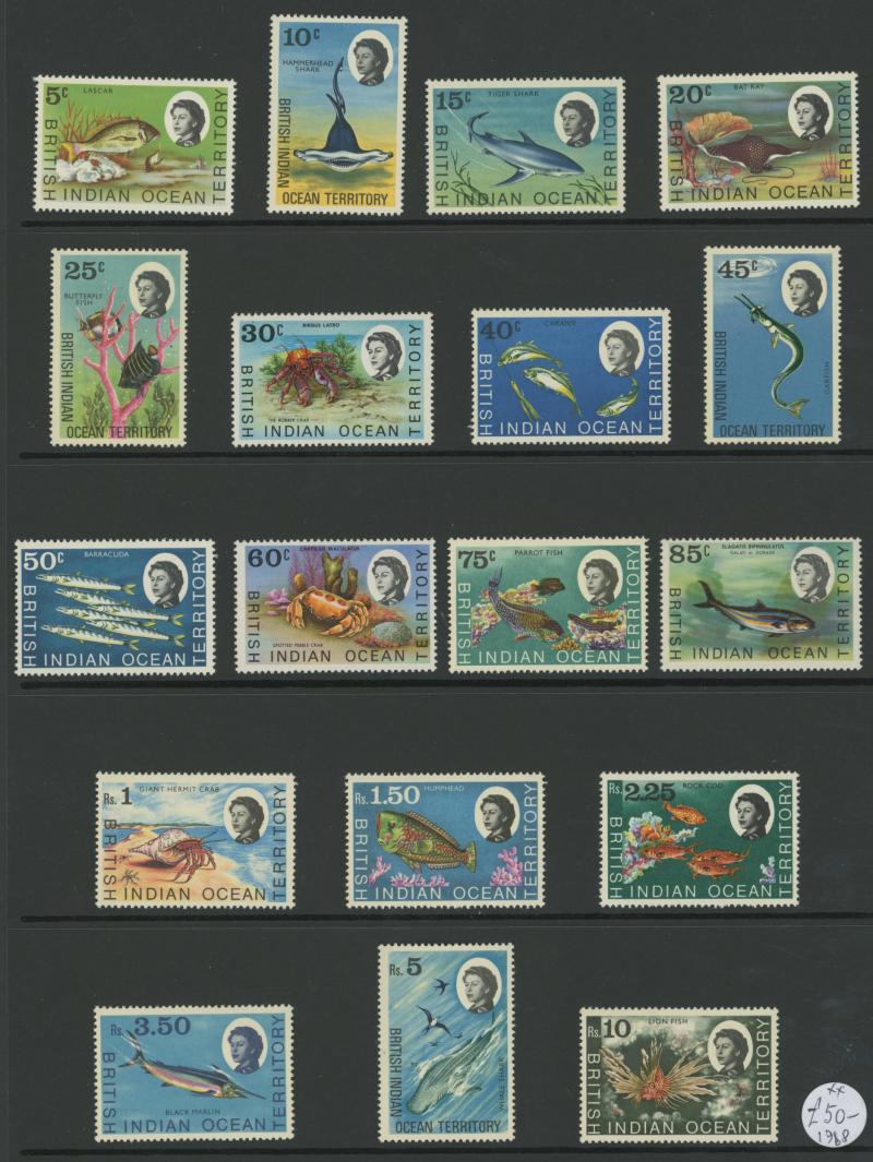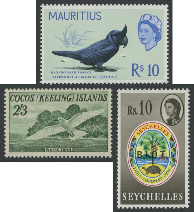 Indian Ocean Islands with British Indian Overseas Territory including 1968 'B.I.O.T.' overprints on Seychelles 10rs No stop after