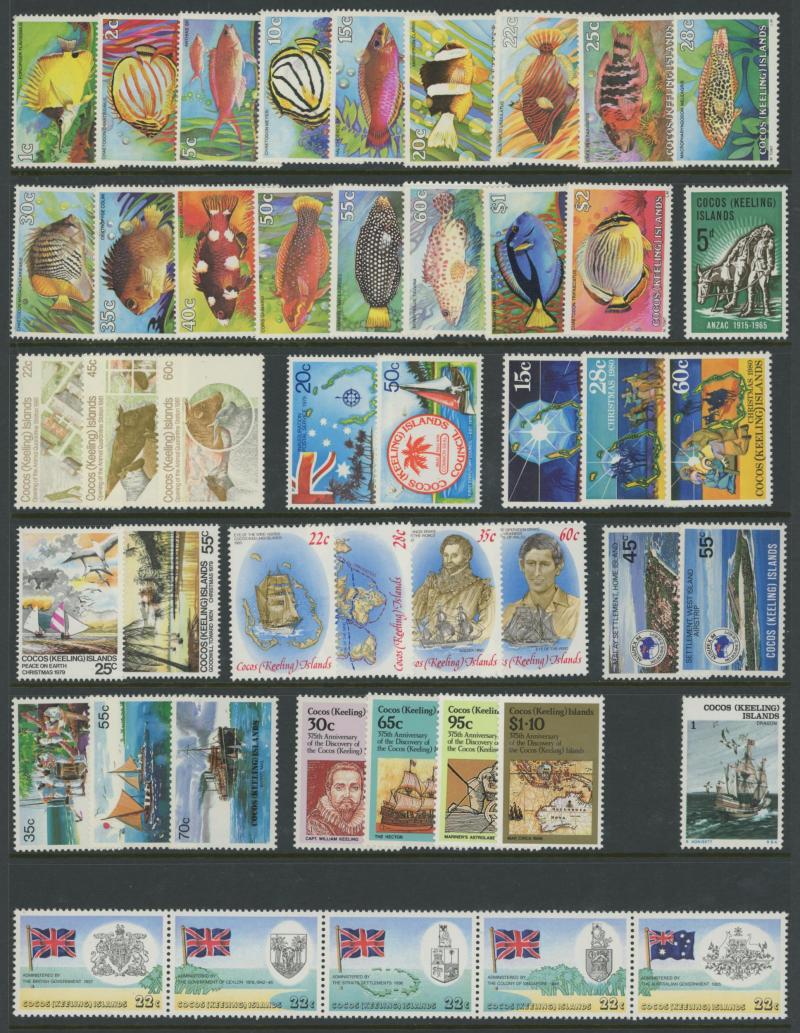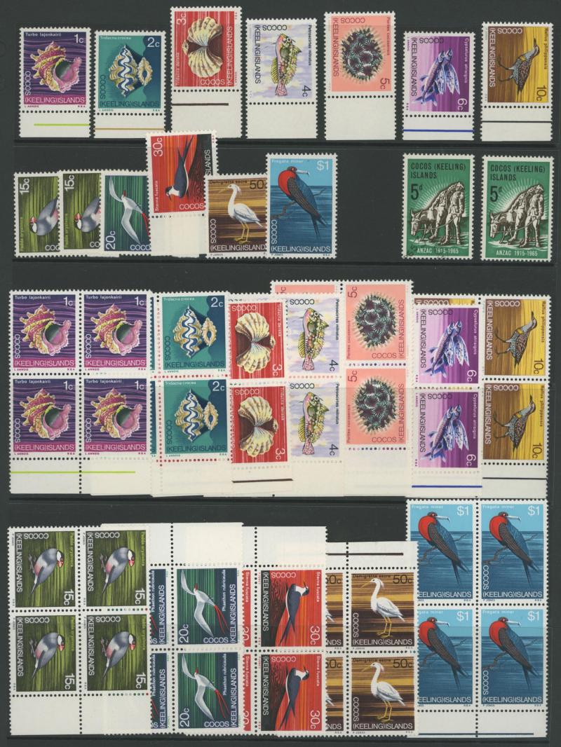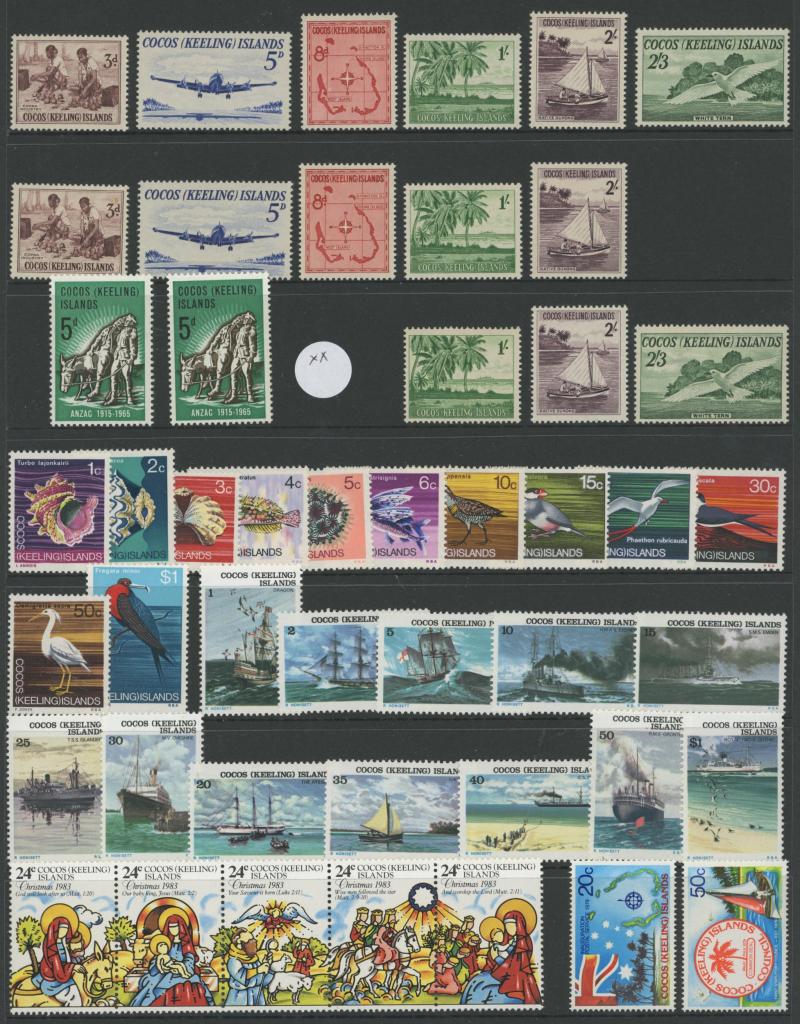 'O' in B.I.O T; Cocos Islands 1963-1990s with M/Ss and sheetlets; Mauritius 1965 QEII Birds set; high thematic content, condition very fine mostly unmounted.
