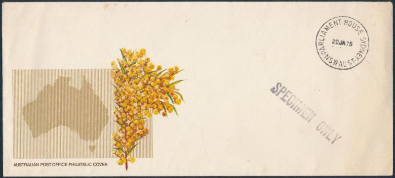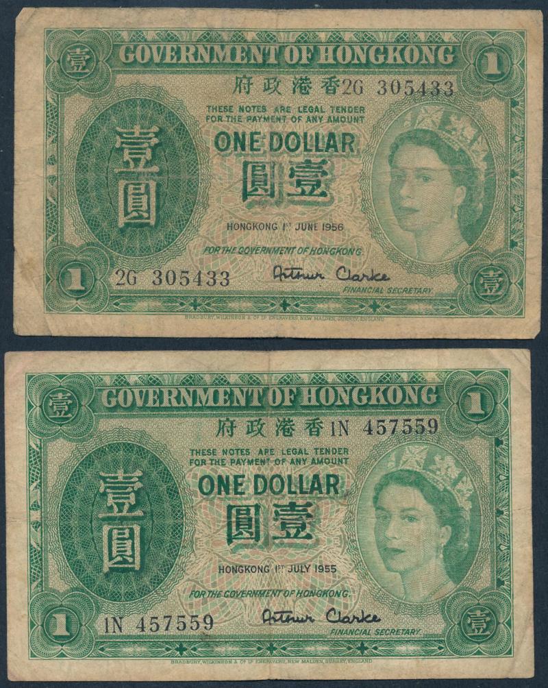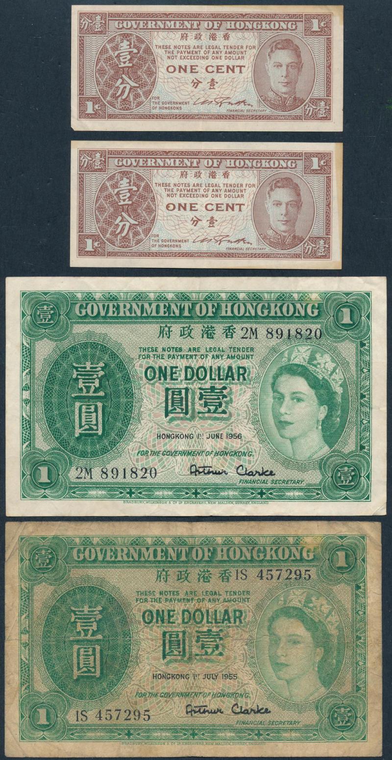 Philatelic Bureau 1975 'SPECIMEN ONLY' covers cancelled 'Parliament House' (2, one small, one large); plus Hong Kong 1955-56 $1 green banknotes x4; condition variable (Image1) (Image2)