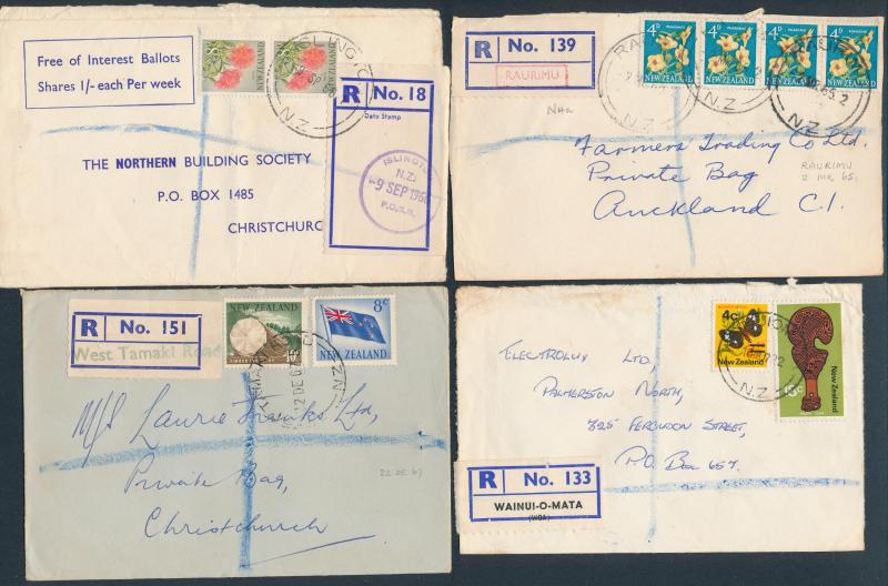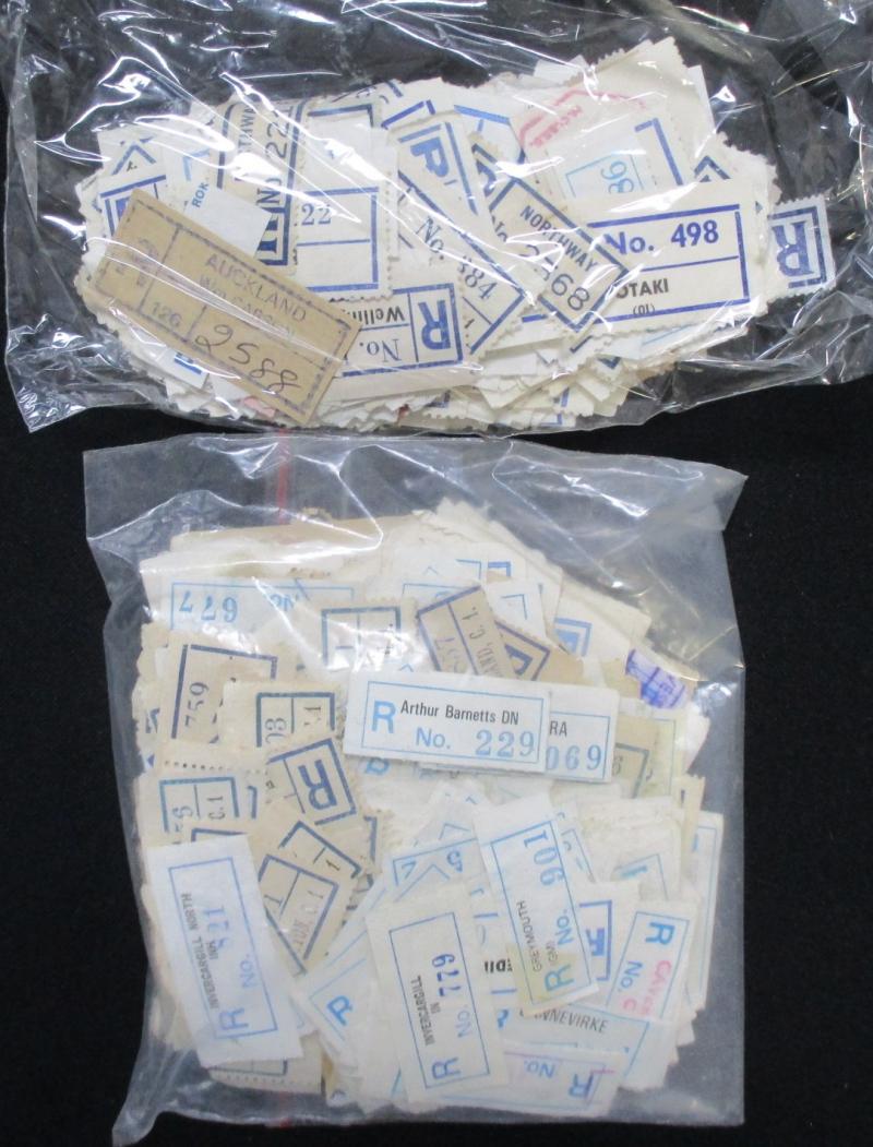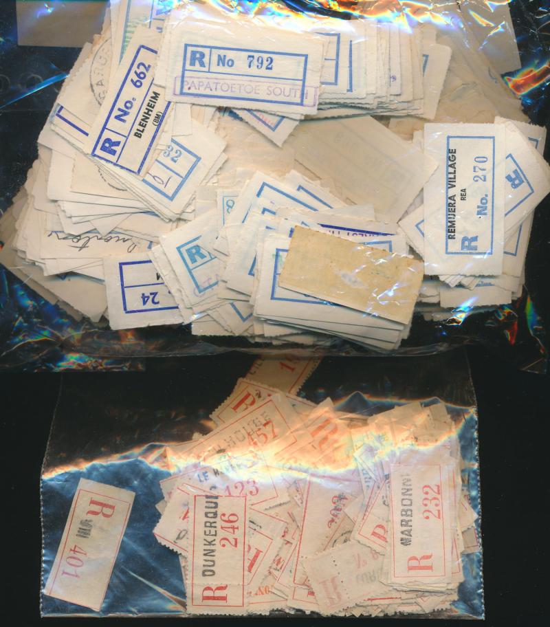 REGISTRATION LABELS: Mostly Decimal period unsorted accumulation in packets, etc, and about 200 mostly commercial registered covers