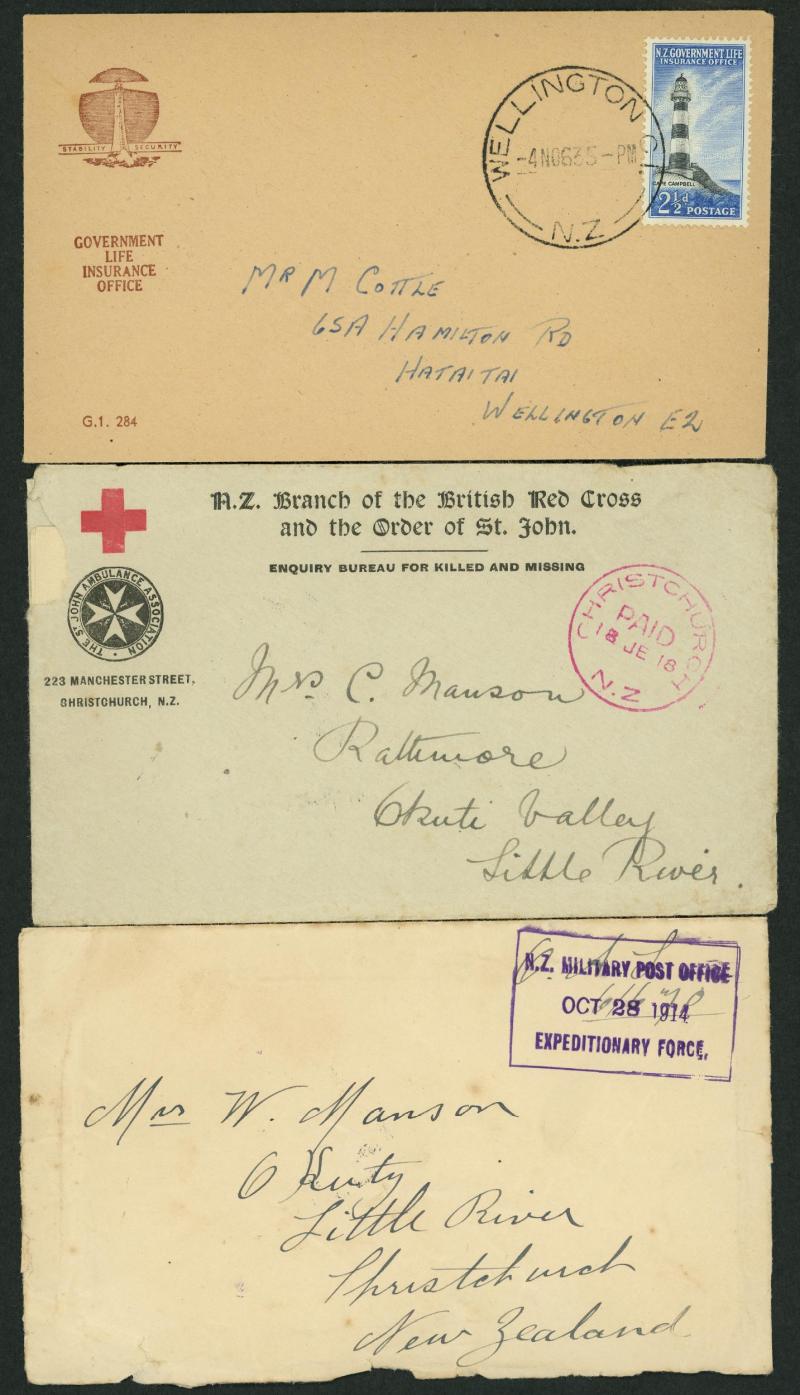 SERVICE/RETURN TO SENDER' cachet, surface cover to an airman in Canada with red/white '..../died on war service/...' label across the flap, also some ship mail including two WWI postcards from Hospital Ship 'Marama' (one with message "...nearing