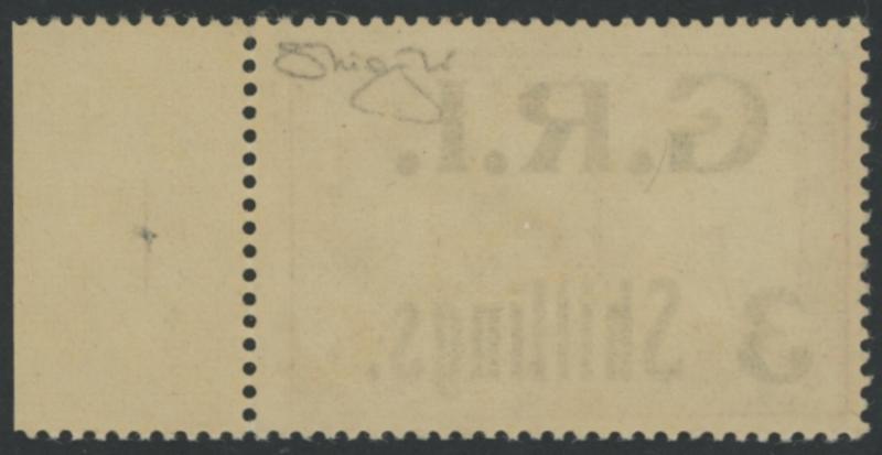 1914 'G.R.I.' Overprints '3 Shillings.' on 3mk violet-black SG 113 marginal example from the right of the sheet, very fresh and