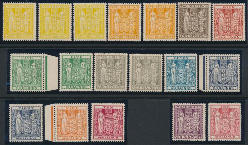 POSTAL FISCALS: 1931-40 NZ/Star Single Watermark Horizontal Mesh Cowan Paper mint selection between SG F145-156 comprising 1/3d