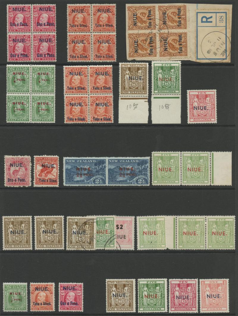 Selection on leaves predominantly mint from 1903-21 Overprints on New Zealand range including multiples, 1931 NZ Postal Fiscals