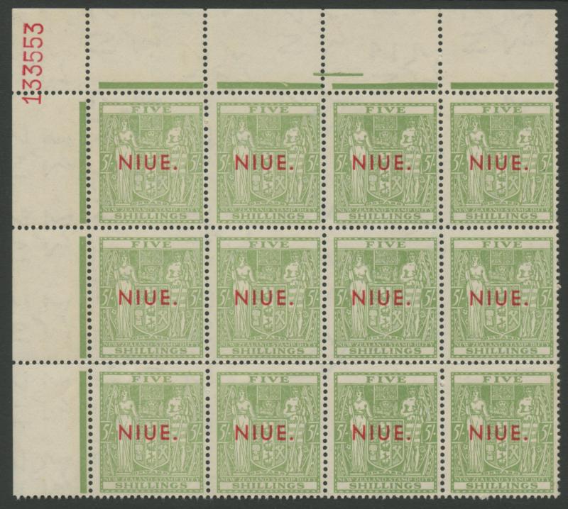 1941-43 'NIUE' Overprint on New Zealand Arms Postal Fiscals Wiggins Teape Paper Single Watermark 5/- green SG 80, well-centred,