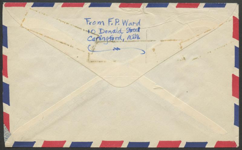 POSTAL HISTORY: 1959 (Dec 21) inwards airmail with Australia with ½d Kangaroo, QE II 2½d blue & 5d Christmas 1959 tied by West Ryde