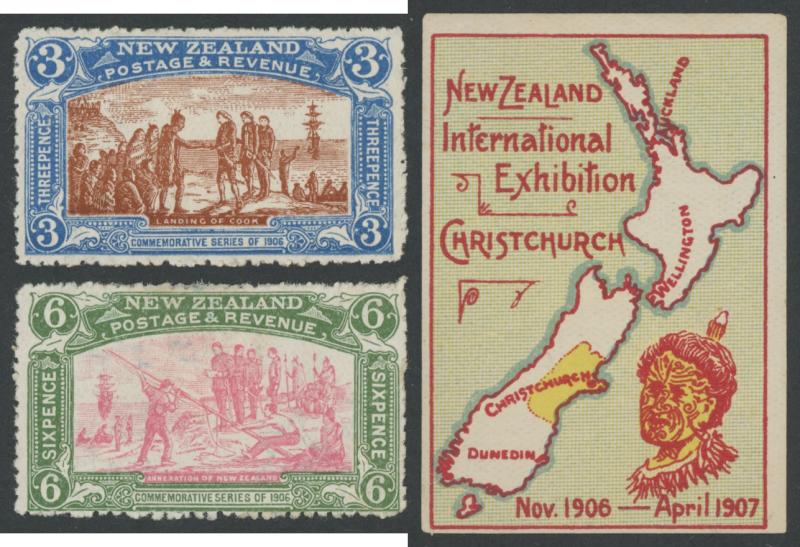 1906 Christchurch Exhibition ½d to 6d sets SG 370-373 with Watermark Sideways to Right and with Watermark Sideways to Left (none of