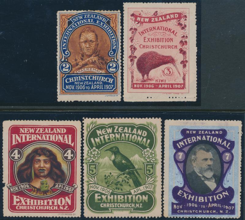 these listed by Gibbons), characteristic rough perfs & variable centring, lightly mounted or with small hinge remainders, Cat £600+; plus Exhibition Publicity labels 1 (unnumbered & imperforate as always) to 7 (ex 6) each with large-part gum, 4 with