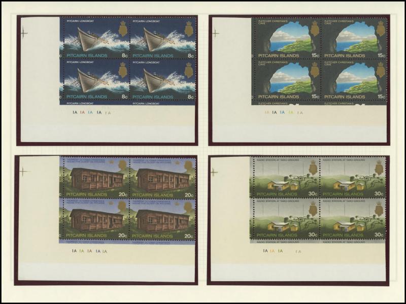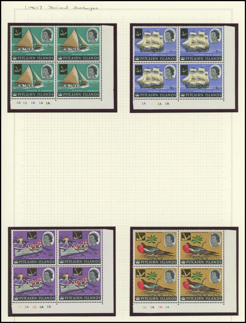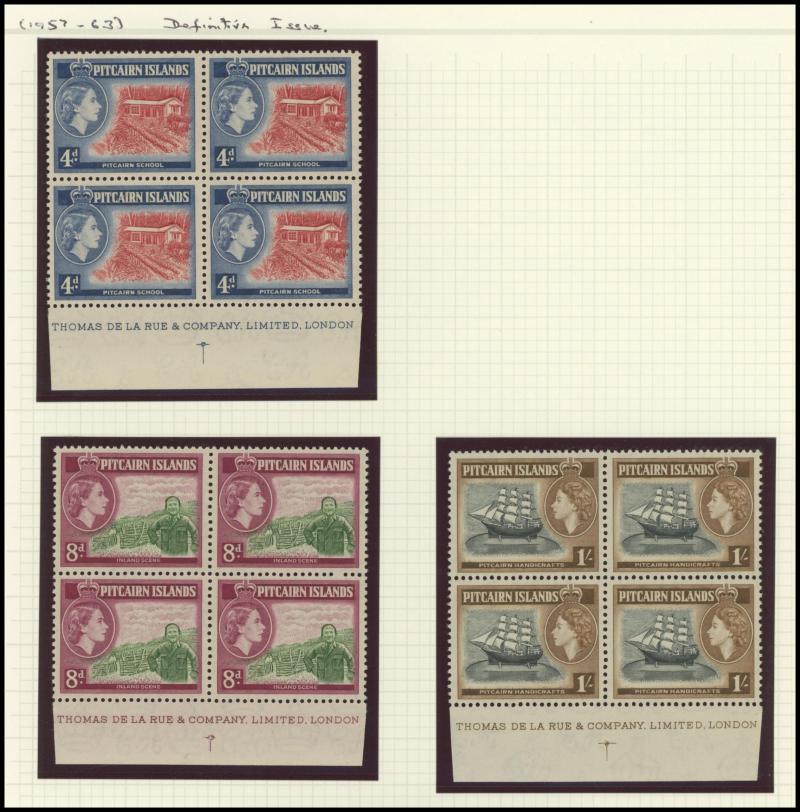 Silver Wedding blocks of 4 ** x2 (one with Plate Number 1), 1957-63 QEII Pictorials set */** & used with extra shades plus 2/6d De La Rue Imprint blocks of 4 ** x2, 1967 Decimal Surcharges & 1969-75 in Plate Number blocks of 4 **, etc, condition