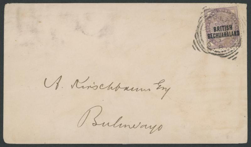 the face, light soiling. An early cover from the conflict (-.10.1893 to -.2.1894) in what became Southern Rhodesia. See also Lot 3862 under Rhodesia. (Image1) (Image2)