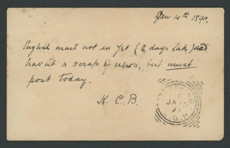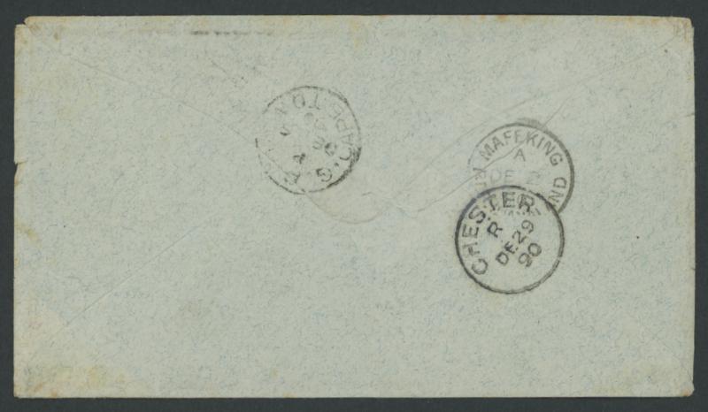 reverse with Mafeking & Cape Town transits and 'CHESTER/ R / DE29/90' arrival cds, repaired tear on the reverse. (Image1) (Image2)