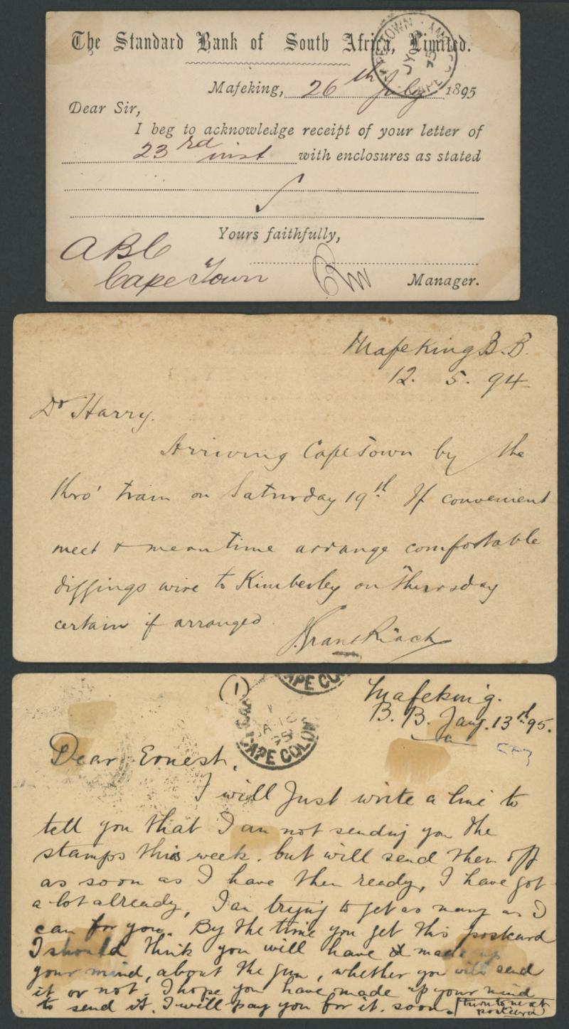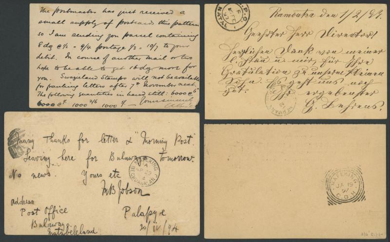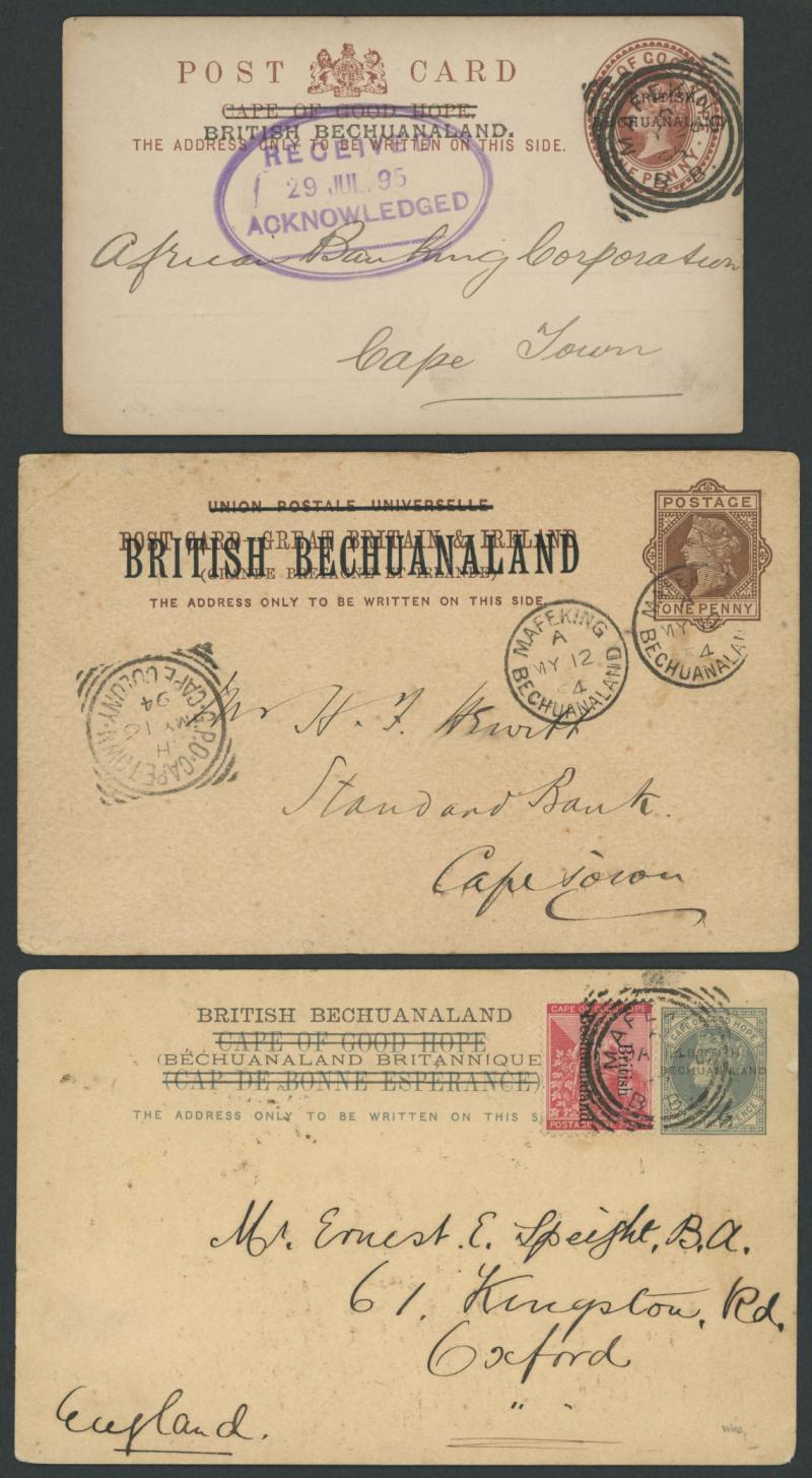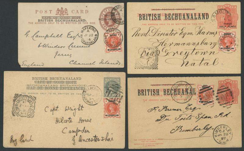 1894-998 commercial usages of British Bechuanaland Overprints on various British x4 or Cape x6 Postal Cards mostly from 'MAFEKING',
