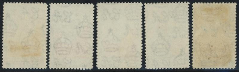 characteristic minor gum bends, a few with small hinge remainders, the 2/6d unmounted, the £1 & £5 very lightly mounted, Cat £350+ for mounted. Primarily used on mining permits in the area of western borderlands of the Matabele Kingdom ceded by King