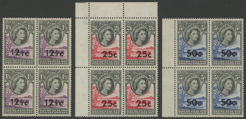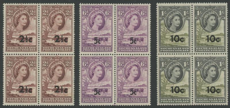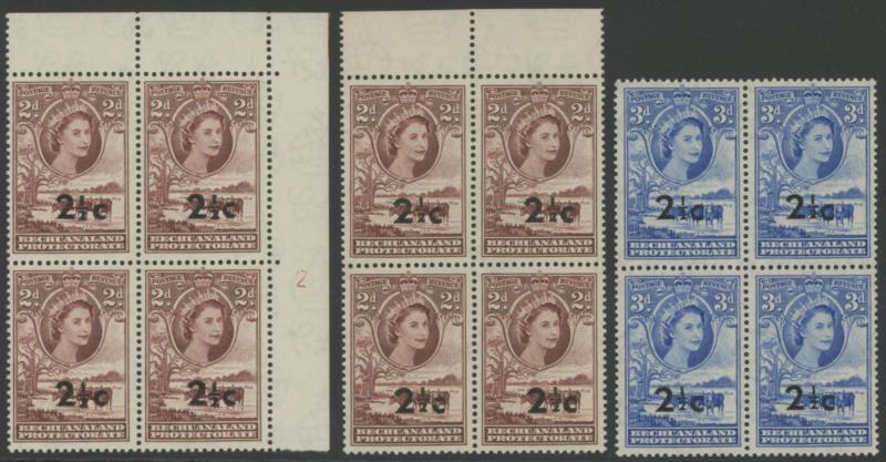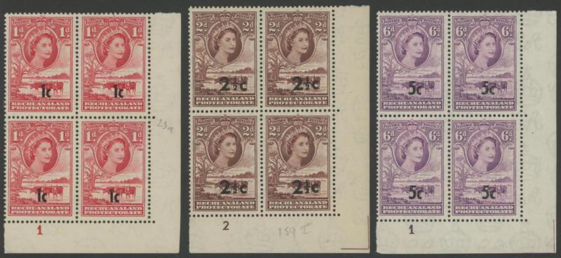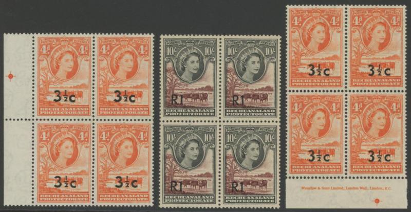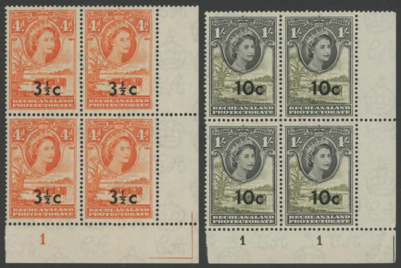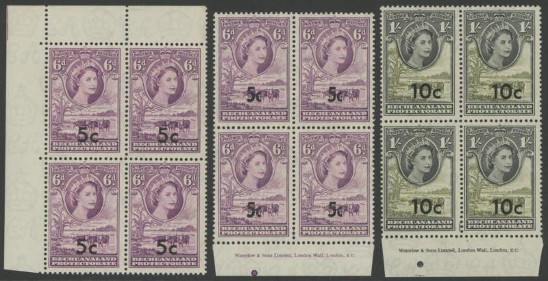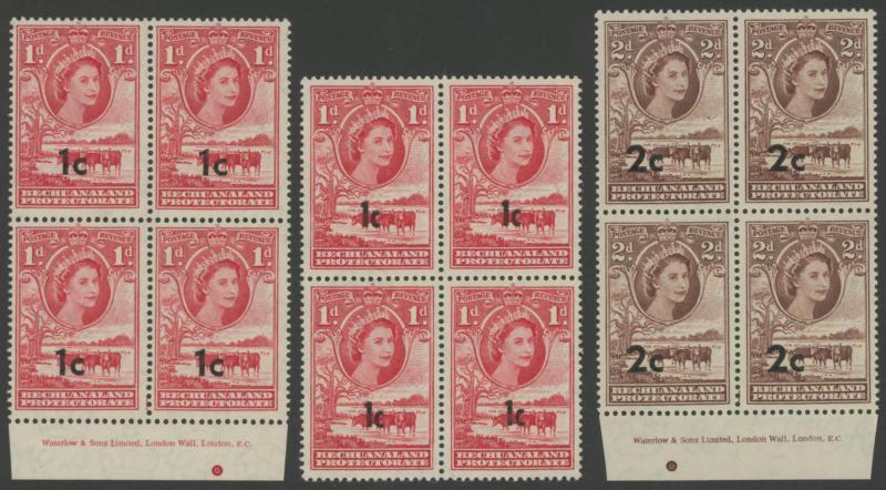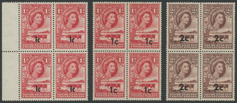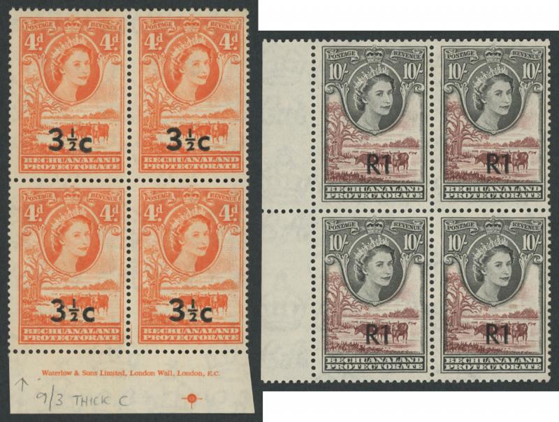 lower-right corners of the sheets, plus Botswana 1967 Birds 1c to 2r set SG 220-233 in blocks of 4, all unmounted, Cat £500+ for singles.