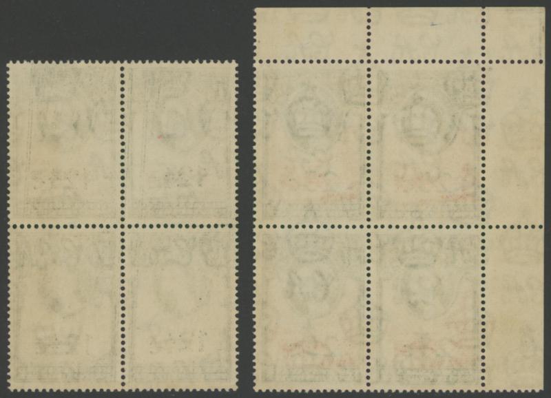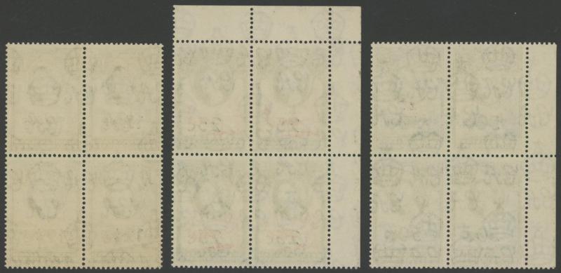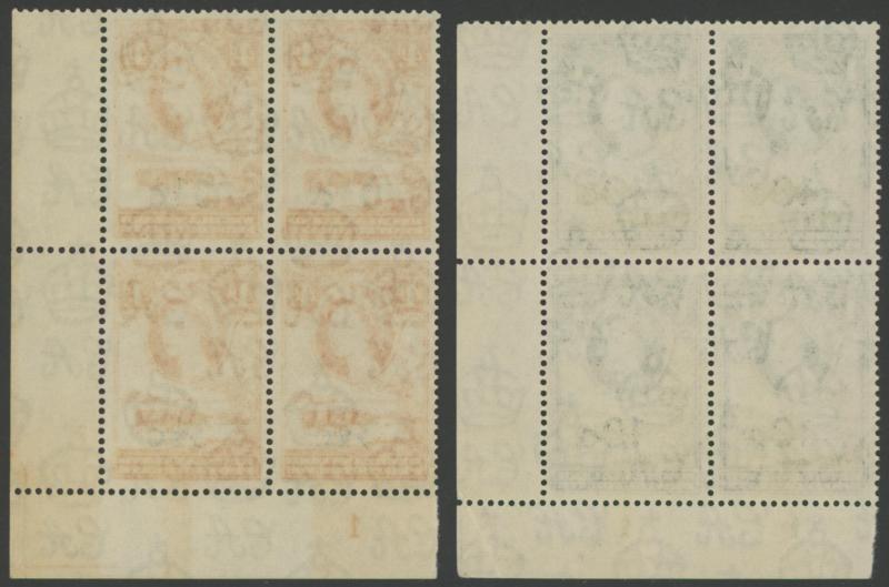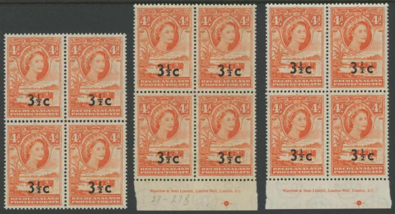 & Type II at Bottom Centre, plus Plate Number blocks '1c' Type 2. '2½c' on 2d brown Type I & Type II, '3½c' Type III, '5c' Type II and 10c, Waterlow Imprint blocks '1c' Type I, '2c', '3½c' Type II (the upper-left unit with Bold 'C', the unit below