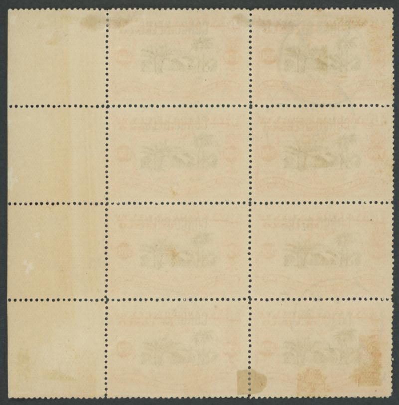 1915 Bi-Lingual Pictorials New Colours printers' sample perforated sheetlet of 9 in unissued colours 15c Oil Palms black & carmine