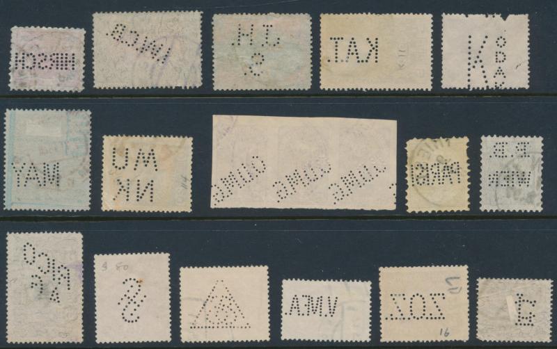 COMMERCIAL PERFINS: Collection of pre-WWII types 'A' to 'ZOZ' with many unusual patterns & a large number on non-base-rate stamps,