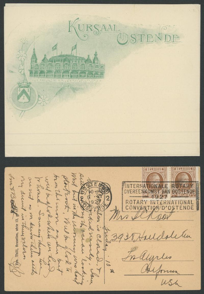 ROTARY INTERNATIONAL: Belgium 1927 Rotary International Convention illustrated envelope of the 'Kursall Ostende' (= Ostende Meeting