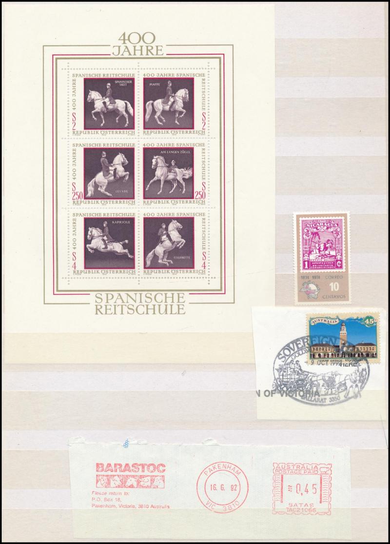 HORSES: Three stockbooks and a display with plenty of covers including FDCs, plus sheets, singles and postmarks. Weighs 10kg.