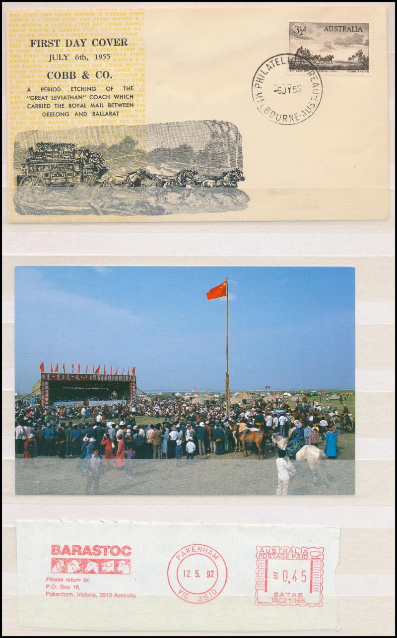Ghan, Festival of Steam, etc, some with silk insert missing but some loose ones supplied as well, plus various world covers and cards, minor toning on some. 28 boxes weighing 76kg.