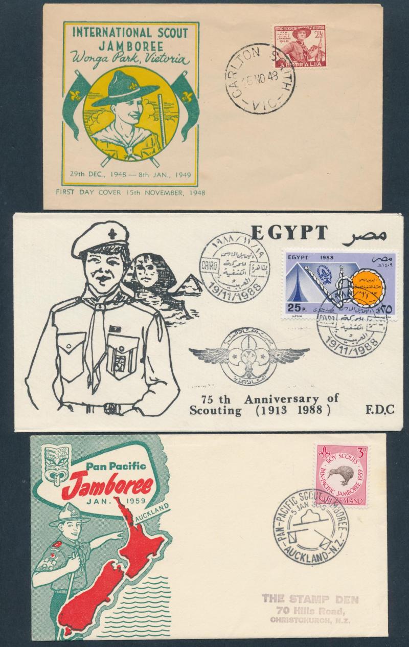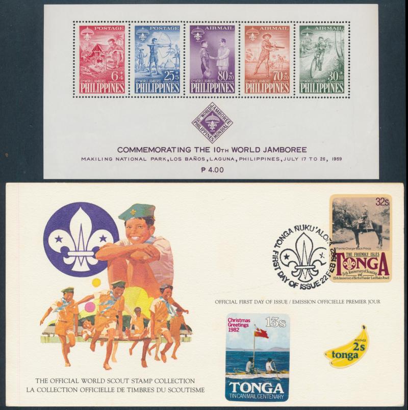 SCOUTING: Neat worldwide collection of stamp sets, M/Ss, FDCs & commemorative covers, PNCs etc in stockbooks. Weighs 6kg.